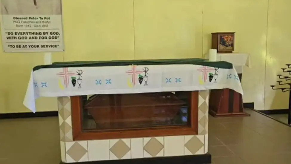 Di hài của Phêrô To Rot trong Đền thờ Phêrô To Rot tại làng Rakunai