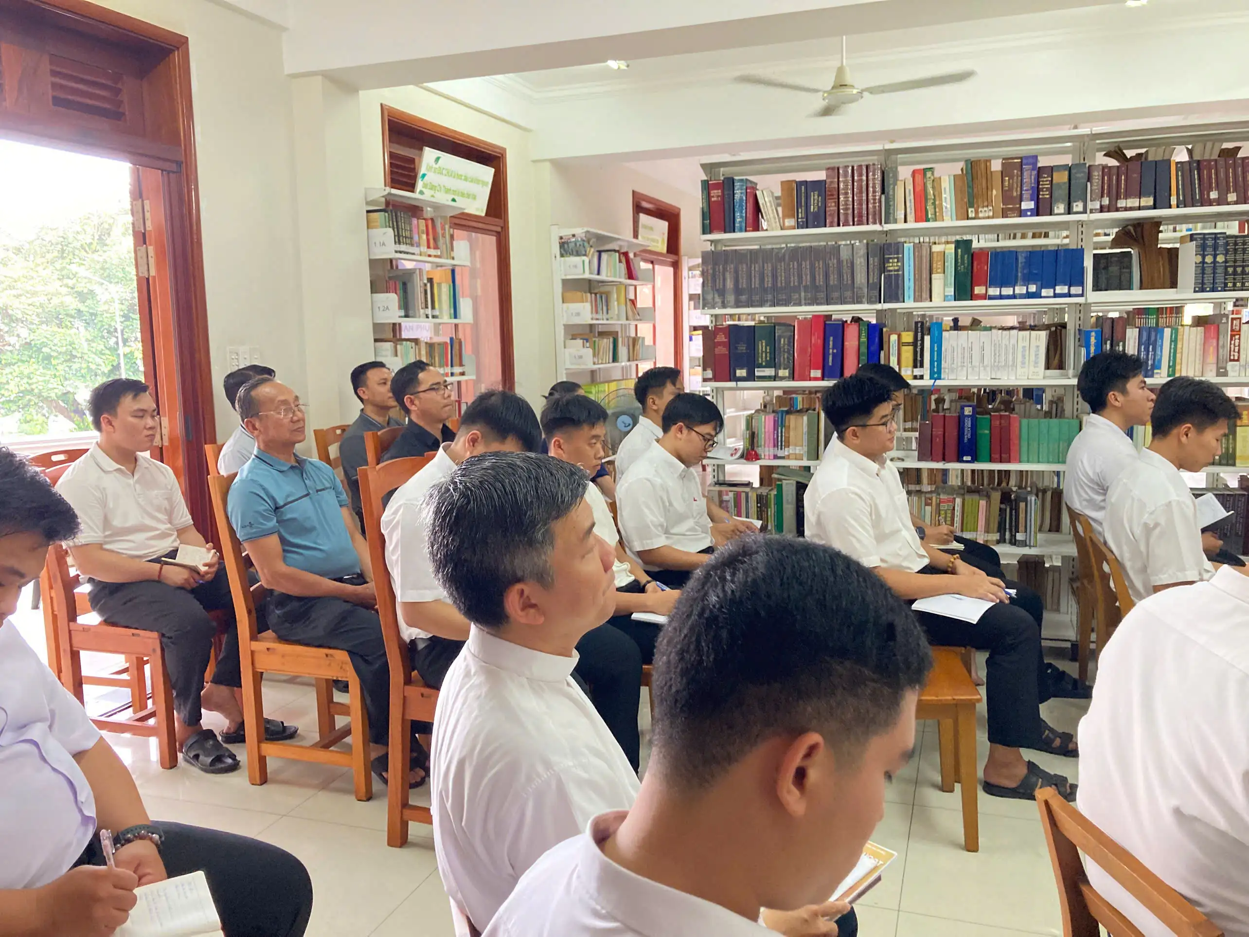 Trong hai giờ gặp gỡ, từ 14g00 đến 16g00, Cha Gioan Kim Khẩu không chỉ chia sẻ những kiến thức thần học quý giá mà còn khơi gợi tinh thần cầu nguyện và chiêm niệm qua từng trang sách. Mỗi bài học, mỗi câu chuyện được Cha dẫn dắt đã trở thành lời mời gọi bước vào cuộc gặp gỡ thân tình với Thiên Chúa – nguồn mạch khôn ngoan và sự sống.