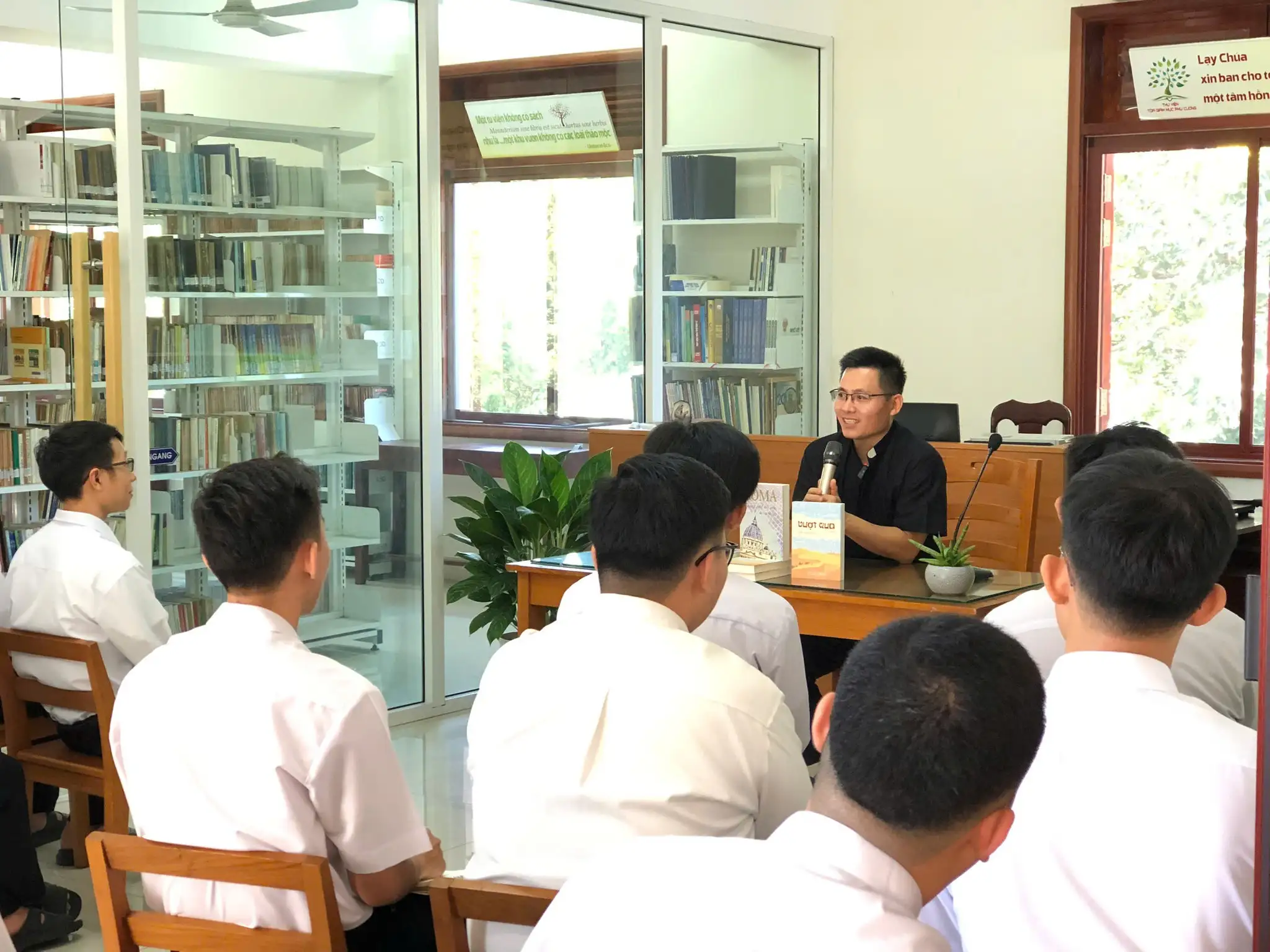 Buổi “Điểm Hẹn Đọc Sách” khép lại trong tâm tình tạ ơn, để lại nơi anh em chủng sinh khát vọng tiếp tục đào sâu Kinh Thánh – nguồn mạch nuôi dưỡng tri thức và đức tin. Mỗi người trở về với hành trình thường ngày, nhưng trong lòng mang theo một lời mời gọi mới: để Lời Chúa trở thành khởi đầu của mọi hiểu biết, mọi chọn lựa và mọi bước đi của ơn gọi. Cuối cùng, Cộng đoàn cùng dâng lời tạ ơn, xin Chúa tuôn đổ ơn khôn ngoan, sức khỏe và bình an trên Cha Giuse Maria, để Cha tiếp tục dẫn dắt nhiều tâm hồn gặp gỡ Chúa qua Lời của Người.