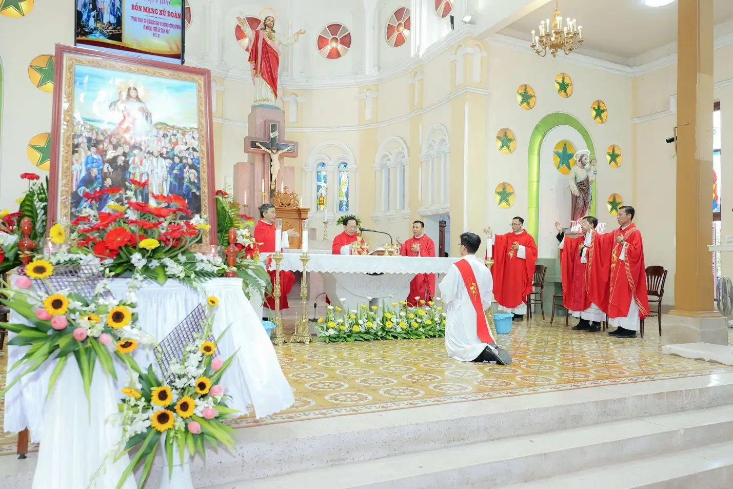 Thánh lễ diễn ra trong bầu khí trang nghiêm và sốt sắng, với sự tham dự đông đảo của cộng đoàn, các bạn thiếu nhi và ứng sinh trong giáo hạt. Trong bài giảng, Cha Antôn nhấn mạnh vai trò không thể thay thế của cha mẹ trong việc nuôi dưỡng ơn gọi, bởi gia đình chính là “chủng viện đầu tiên”. Ngài cũng nêu bật những thách đố của xã hội hiện nay ảnh hưởng đến công cuộc đào tạo ơn gọi, và mời gọi cộng đoàn soi mình nơi gương anh dũng của các Thánh Tử Đạo – những người đã hy sinh, đổ máu để làm chứng cho đức tin, chứ không phải bằng những hành động dễ dàng hay thoải mái. Bài giảng đã giúp cộng đoàn thêm ý thức và trân trọng hành trình ơn gọi trong Giáo hội.