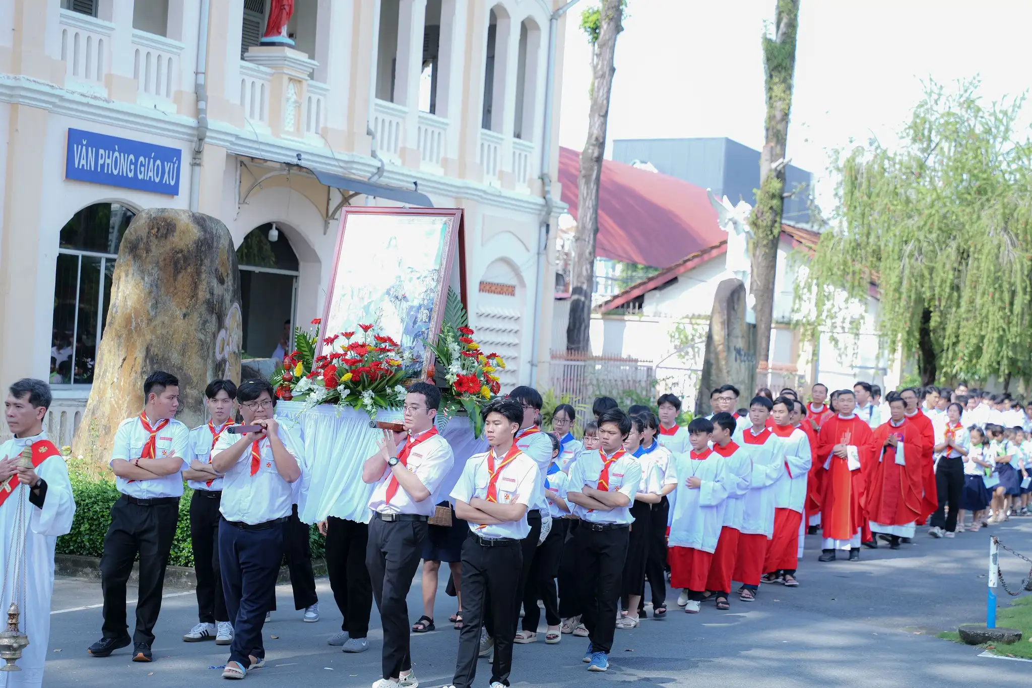 Kết thúc thánh lễ là cuộc rước kiệu kính các Thánh Tử Đạo xung quanh nhà thờ trong bầu khí thánh thiêng và trang trọng.