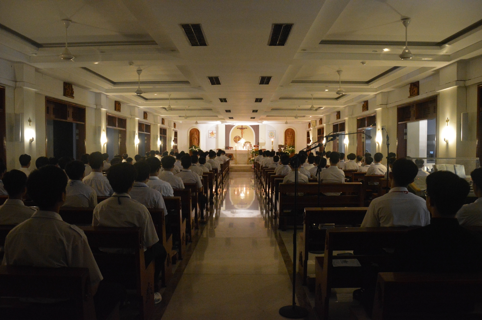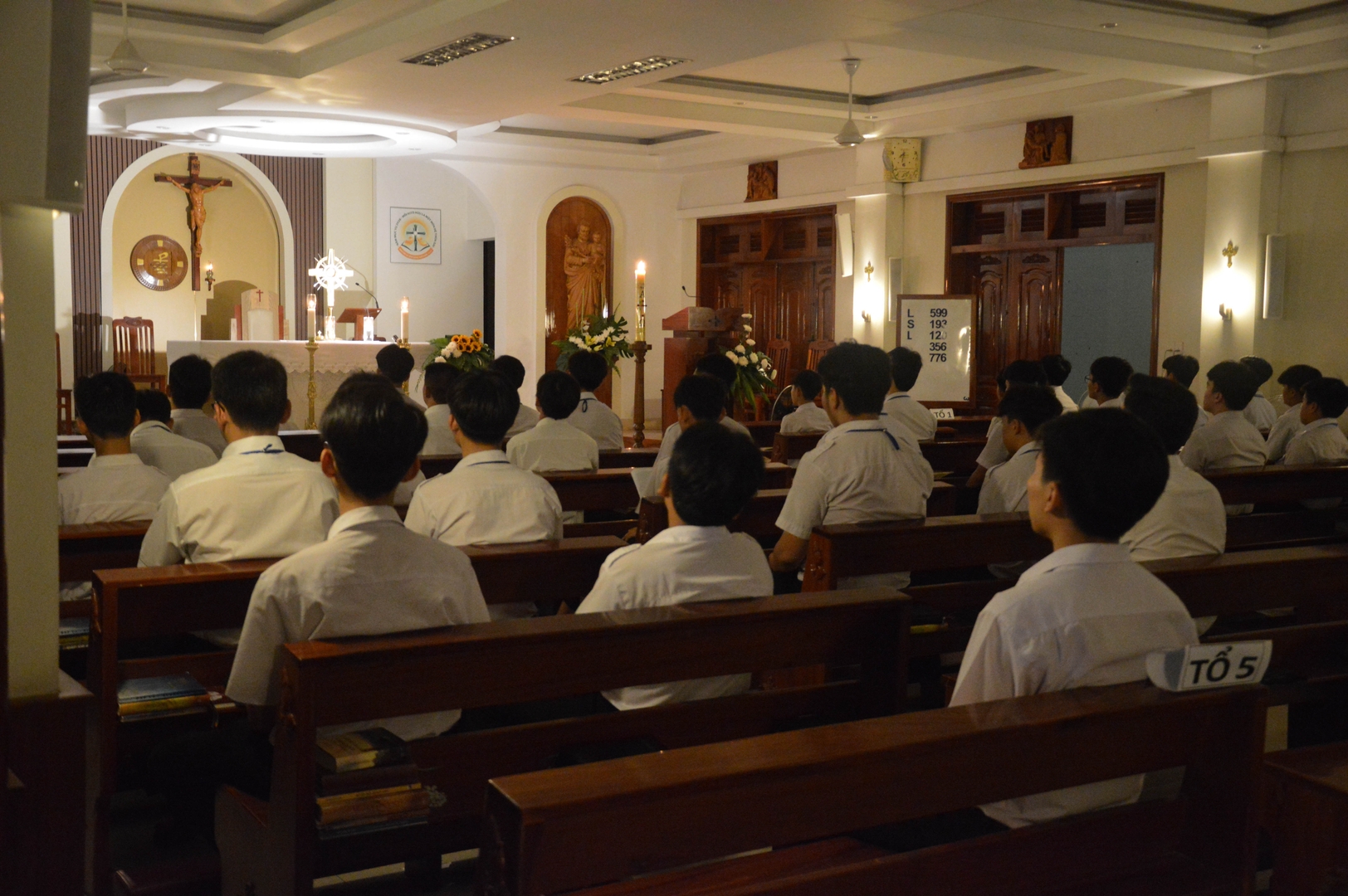 Khi chiều buông, vào lúc 17g30, cộng đoàn quy tụ trong giờ kinh chiều trọng thể. Những lời Thánh vịnh vang lên như nhịp cầu nối kết tâm hồn con người với Thiên Chúa. Không gian lắng đọng ấy giúp mỗi ứng sinh dừng lại, nhìn sâu vào nội tâm, để nhận ra rằng: giữa bao ồn ào của cuộc sống, tiếng Chúa vẫn luôn âm thầm vang vọng.