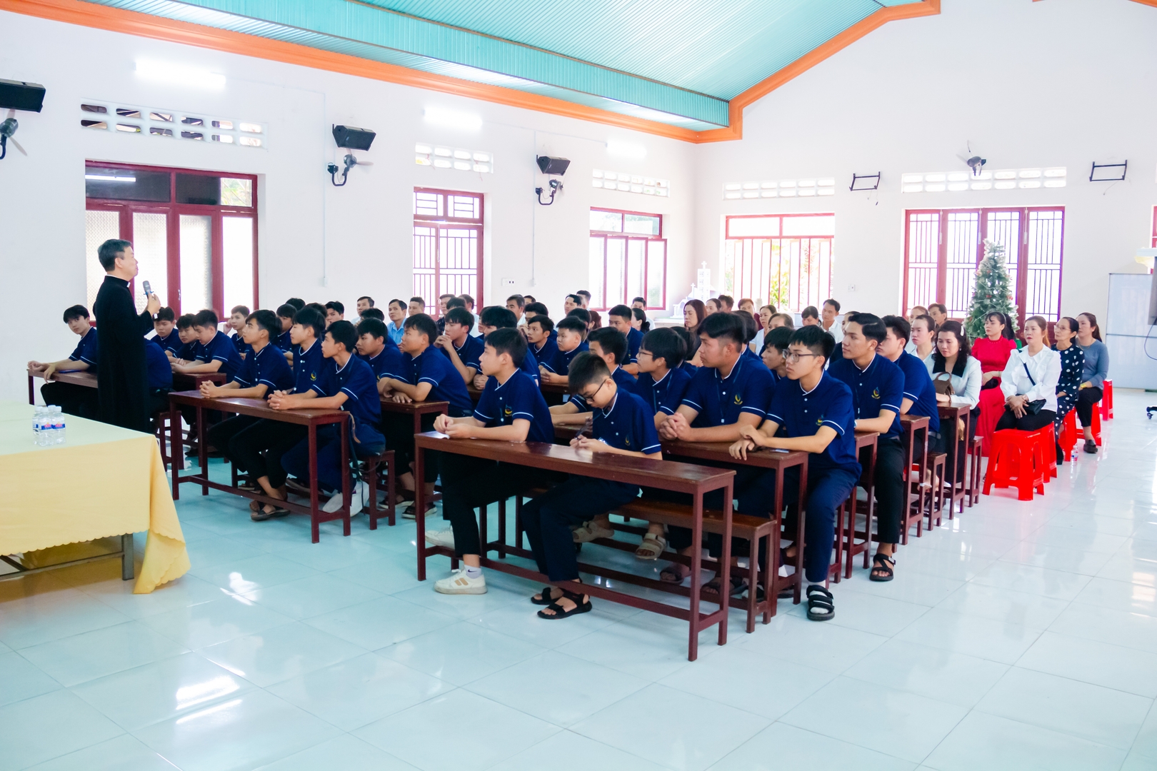 Sau Thánh lễ, cộng đoàn cùng bước vào chương trình giao lưu và chia sẻ. Trong phần này, cha Phêrô Dư Ước Nguyện, một người con của Giáo hạt Tây Ninh, đã chia sẻ về hành trình ơn gọi của bản thân, từ những bước khởi đầu cho đến khi dấn thân trong đời sống linh mục. Tiếp đó, cha Phaolô Nguyễn Thanh Tuấn đã trình bày tiến trình đào tạo linh mục của Giáo phận Phú Cường, giúp các bạn trẻ và quý phụ huynh hiểu rõ hơn về con đường huấn luyện và đào tạo dành cho những ai được mời gọi dâng hiến đời mình trong sứ vụ linh mục. Xen kẽ chương trình là các tiết mục văn nghệ do quý thầy dự bị chủng sinh thuộc Chủng viện Thánh Giuse Phú Cường trình bày, góp phần tạo nên bầu khí vui tươi, gần gũi và gắn kết.