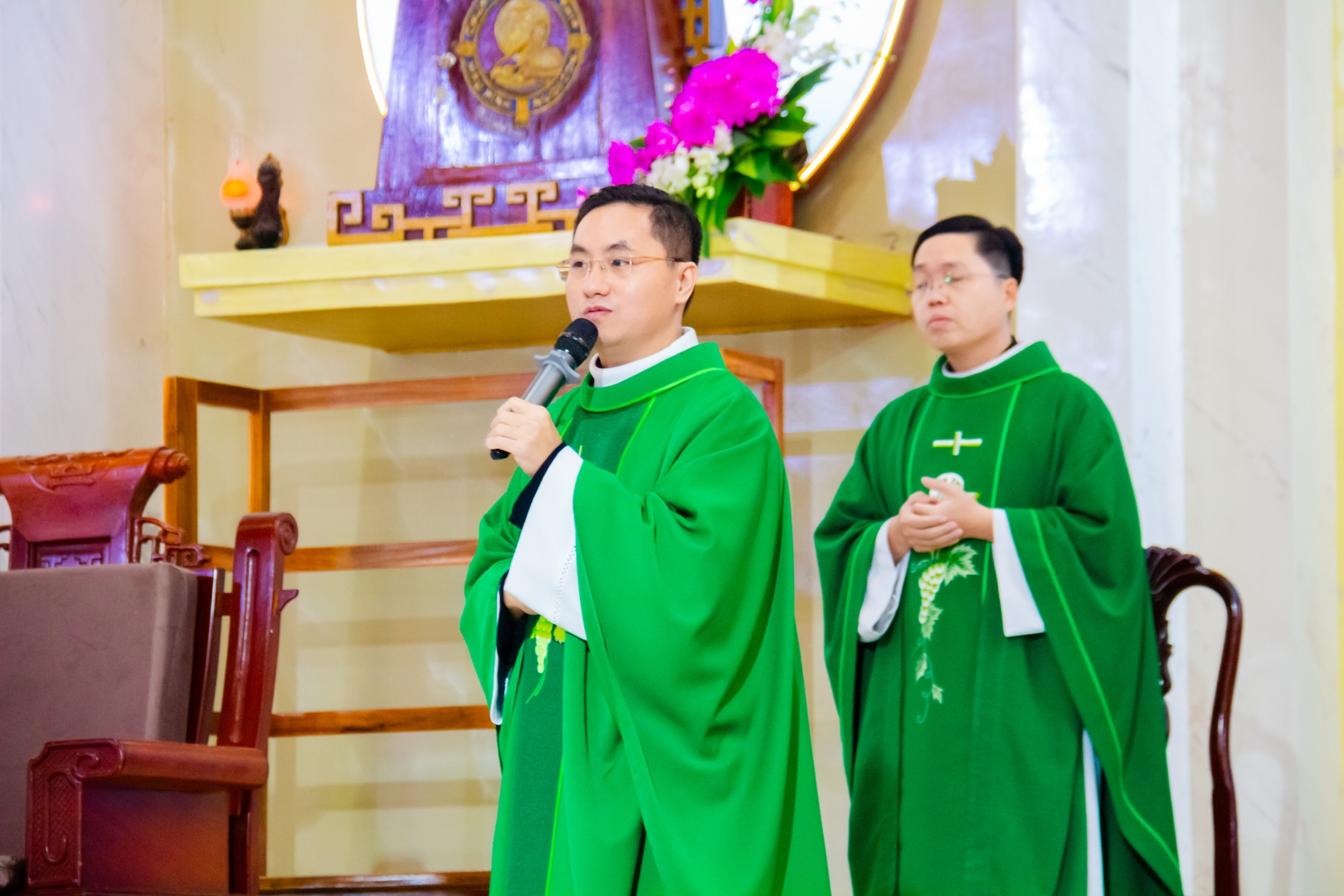 Ngày cầu nguyện được mở đầu bằng Thánh lễ do cha Phaolô Nguyễn Thanh Tuấn chủ tế cùng quý cha đồng tế. Trong bài giảng với chủ đề “Lựa chọn con đường ơn gọi”, cha Antôn Hà Xuân Lộc đã mời gọi các bạn ứng sinh, quý phụ huynh và cộng đoàn nhìn việc chọn lựa ơn gọi dưới ánh sáng đức tin. Cha nhấn mạnh rằng việc con cái bước theo ơn gọi dâng hiến không phải là một sự đánh liều cho tương lai, nhưng là hành trình đáp trả tiếng gọi của Thiên Chúa. Ngài cũng nhắn nhủ các bậc phụ huynh hãy tránh áp đặt ý riêng của mình lên con cái, thay vào đó là thái độ tín thác, lắng nghe và đón nhận thánh ý Chúa, để các bạn trẻ có thể can đảm chọn con đường tốt hơn, thay vì chỉ tiếp tục bước đi trên những lối mòn quen thuộc của suy tính con người.