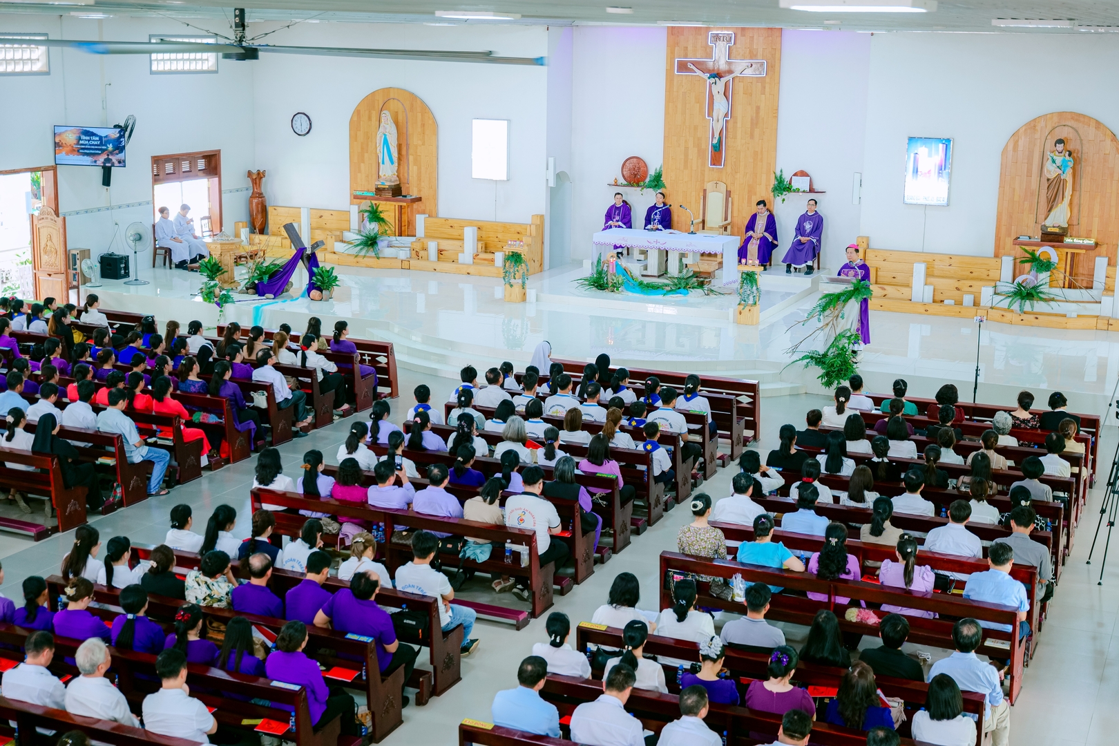 Lúc 11g00, Đức Cha Giuse Nguyễn Tấn Tước, Giám mục Giáo phận, đã chủ sự Thánh lễ Chúa nhật thứ III Mùa Chay. Trước Thánh lễ, cha Đặc trách đã giới thiệu với Đức Cha về sự hiện diện đông đảo của anh chị em ca viên cùng quý cha đồng tế.