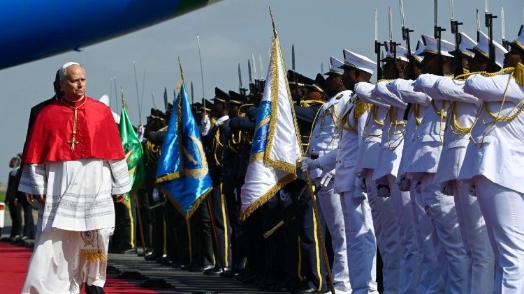 Nghi thức chào đón Đức Thánh Cha Lêô XIV tại Sân bay quốc tế Luanda, Angola, ngày 18.04.2026. (ANSA)