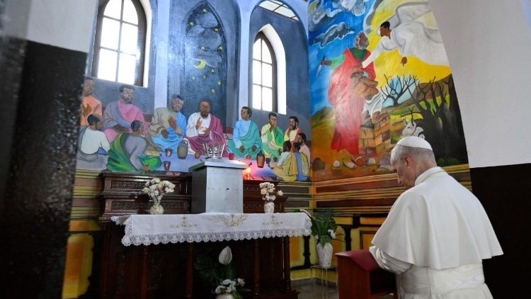 “Hạnh phúc thay ai biết vâng theo luật pháp Chúa Trời” (x. Tv 119/118,1): chúng ta đã hát như thế trong Thánh vịnh. Anh chị em thân mến, chính Chúa vạch ra con đường cho hành trình này, chứ không phải những nhu cầu cấp bách hay trào lưu nhất thời. Vì thế, khi bước theo Đức Giêsu, hành trình của Giáo hội luôn là một “công nghị của sự phục sinh và hy vọng” (Tông huấn Ecclesia in Africa, 13), như thánh Gioan Phaolô II đã khẳng định trong Tông huấn dành cho Phi Châu: chúng ta hãy tiếp tục tiến bước theo hướng đi khôn ngoan này! Với Phúc Âm trong lòng, anh chị em sẽ có can đảm trước khó khăn và thất vọng: con đường Thiên Chúa mở ra cho chúng ta không bao giờ mất đi. Thật vậy, Chúa luôn bước đi cùng nhịp với chúng ta, để chúng ta có thể tiến bước trên đường của Người: chính Đức Kitô ban định hướng và sức mạnh cho hành trình, một hành trình mà chúng ta muốn ngày càng học sống đúng như bản chất của nó, nghĩa là mang tính hiệp hành.