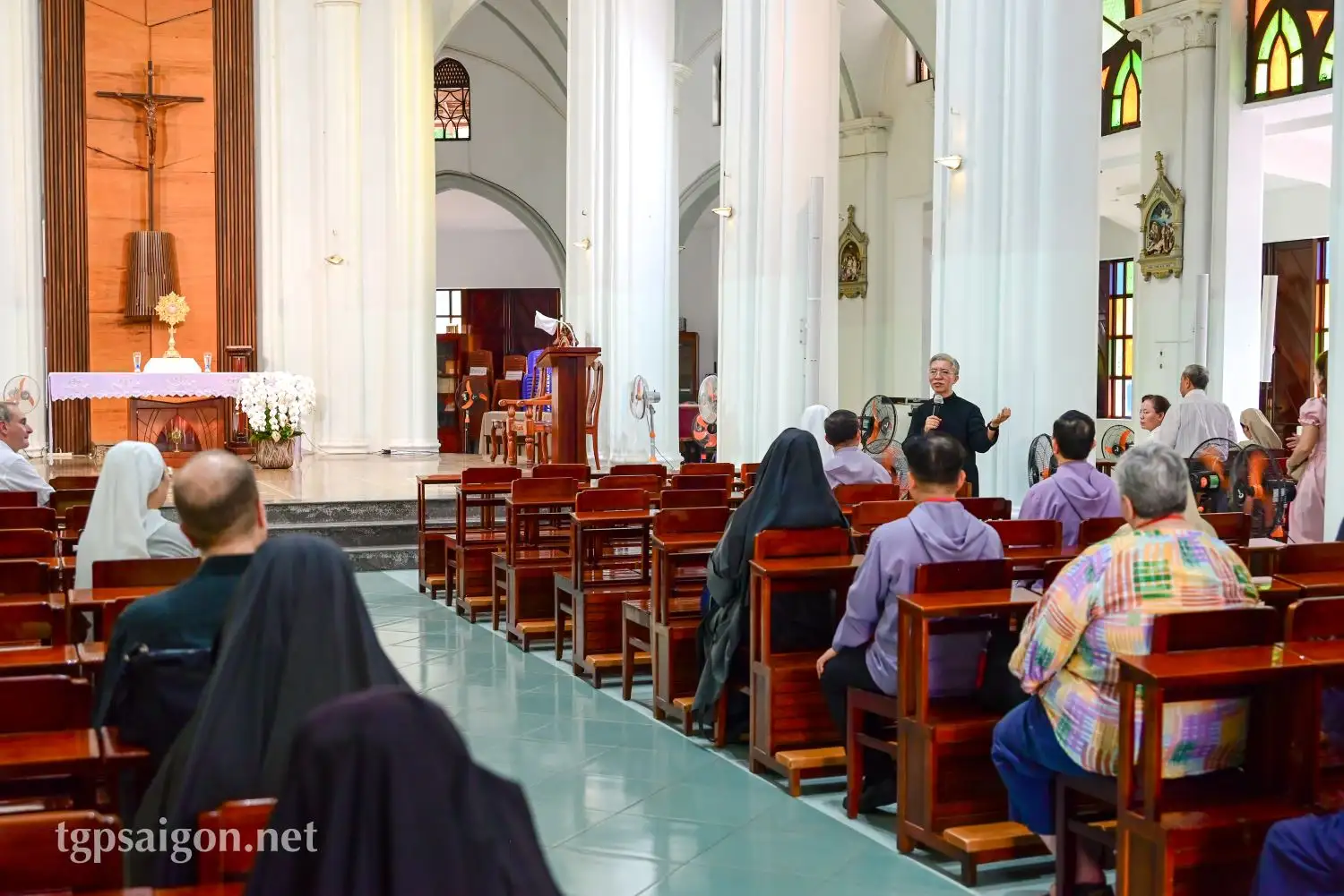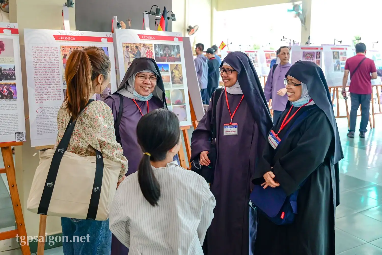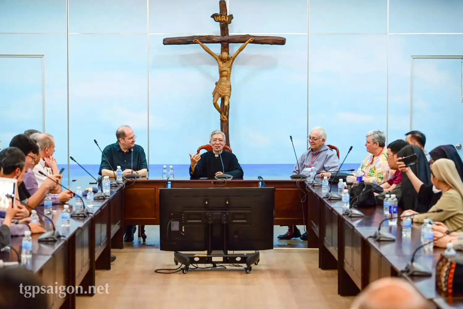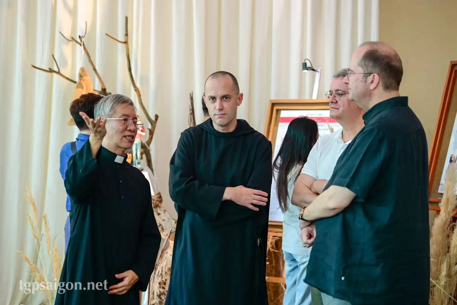 Tại Trung tâm Mục vụ TGP Sài Gòn, Cha Phanxicô Xaviê Bảo Lộc, Giám đốc TTMV, đã thân mật đón tiếp phái đoàn và hướng dẫn tham quan các khu vực chính của trung tâm. Đặc biệt, đoàn đã ghé thăm Triển lãm “Phép lạ Thánh Thể trên Thế giới”, nhà nguyện cổ – nơi lưu giữ thánh tích của thánh Carlo Acutis, thánh Giáo hoàng Gioan Phaolô II, cùng di cốt Đức cha Lambert de la Motte, vị Giám mục tiên khởi của Đàng Ngoài, và phần mộ các Đức Giám mục tiền nhiệm của Tổng Giáo phận.
