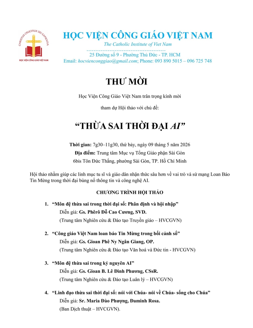 Học Viện Công Giáo Việt Nam - Thư Mời Tham Dự Hội Thảo Với Chủ Đề: “Thừa Sai Thời Đại AI”