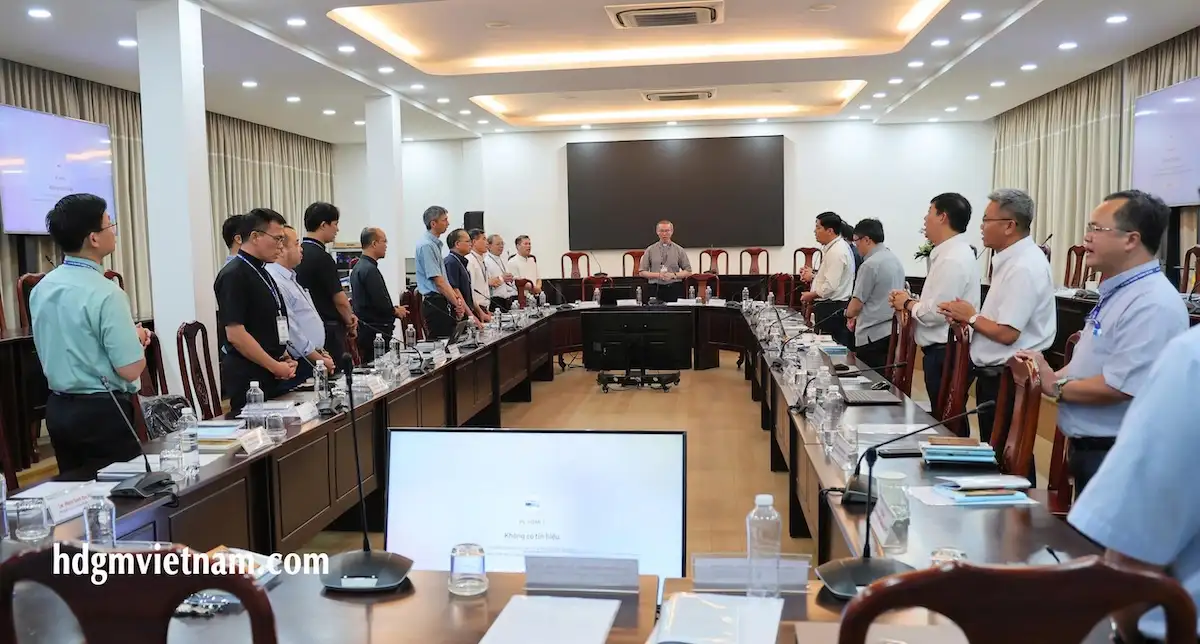 Sau khi các tham dự viên từ các giáo tỉnh giới thiệu và chia sẻ về hoạt động truyền thông tại địa phương mình, Đức cha Đaminh Nguyễn Tuấn Anh đã trình bày những thao thức mục vụ của HĐGMVN về truyền thông xã hội trong bối cảnh mới.