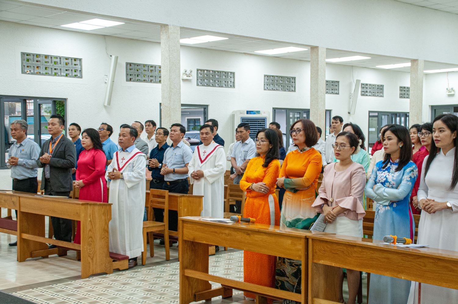 Tham dự Thánh lễ có các doanh nhân Công giáo, các hội đoàn, ca đoàn, ân nhân và khách mời. Trong trang phục trang nhã, cộng đoàn đã tề tựu đông đủ tại khuôn viên, hân hoan chào đón Đức cha Phêrô, quý linh mục và các vị khách.