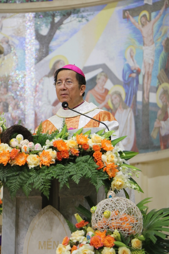 Trong bài giảng, Đức cha Giuse chia sẻ về mầu nhiệm Vượt Qua và mời gọi mỗi người cảm nghiệm ý nghĩa thâm sâu của biến cố Phục Sinh, để thấu cảm tình yêu Chúa dành cho mình. Chúa Giêsu đã sống lại, đã chiến thắng cái chết và giải thoát con người khỏi sự chết. Chính trong giây phút này, mỗi Kitô hữu cùng được sống lại với Chúa Giêsu Phục Sinh.