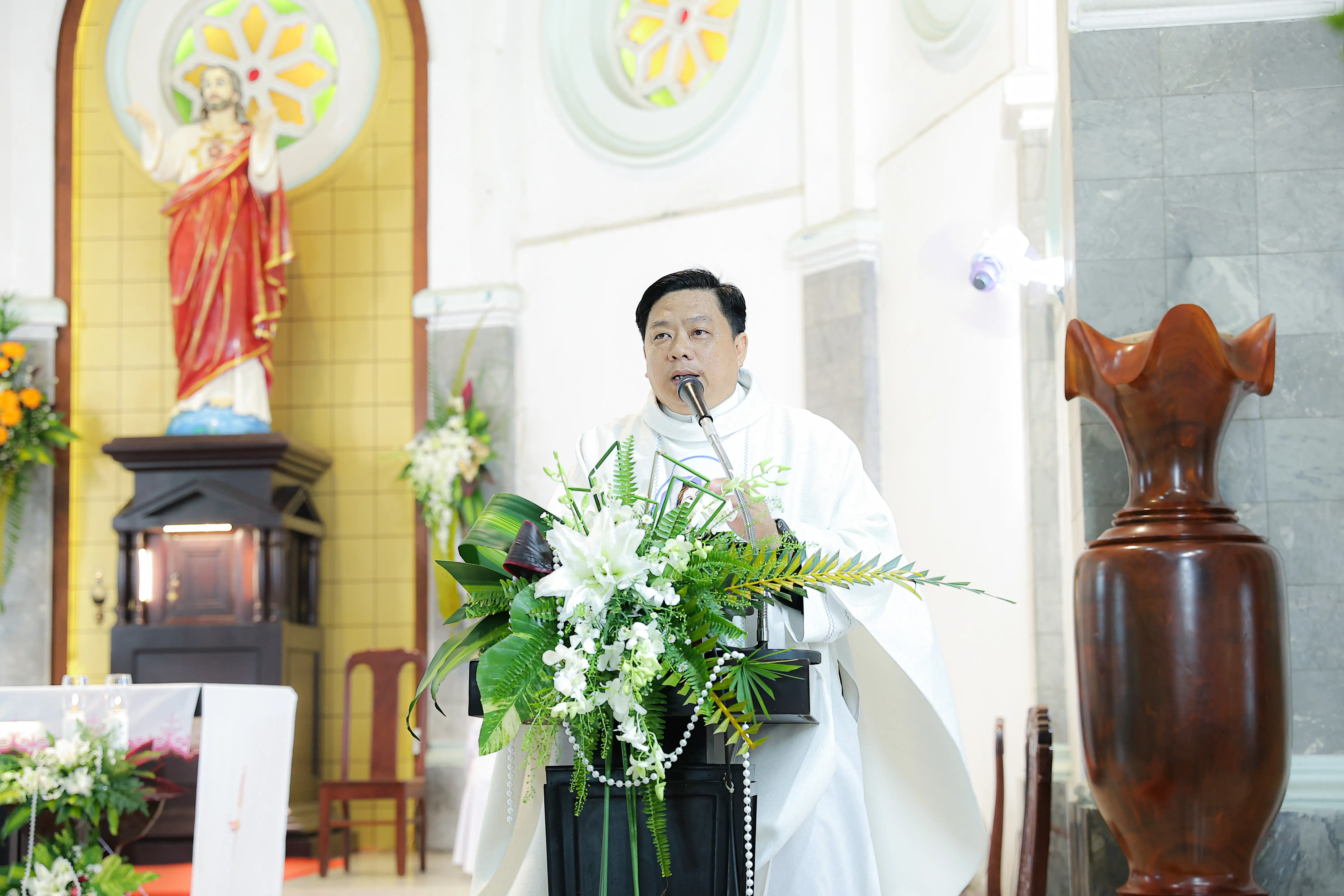 Trong bài giảng, Cha Đaminh dẫn cộng đoàn trở về với hành trình 60 năm ân sủng của Giáo phận Phú Cường – từ những ngày đầu gian nan, khi được tách ra khỏi Tổng Giáo phận Sài Gòn năm 1965, giữa khói lửa chiến tranh. Khi ấy, tại các vùng Hớn Quản, Lộc Ninh, mỗi khu đồn điền cao su đều có một ngôi nhà thờ nhỏ để quy tụ giáo dân sống đức tin. Trong những năm tháng khó khăn ấy, nhiều linh mục phải trông coi vùng rộng lớn, gánh vác nặng nề nhưng vẫn kiên trung phục vụ. Có khi tiếng chuông nhà thờ im bặt, nhưng lòng tin của người tín hữu vẫn cháy sáng trong thinh lặng và thử thách.