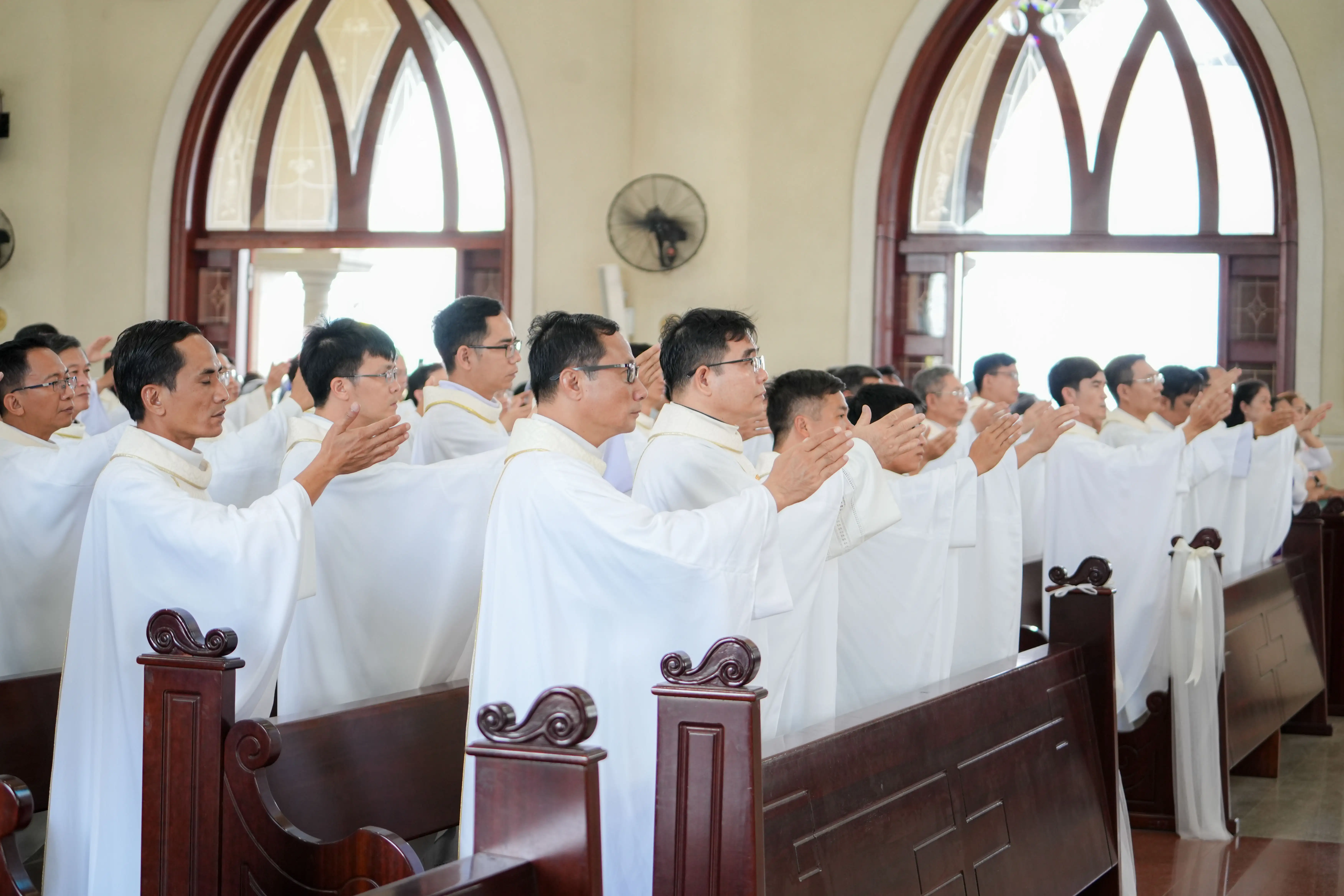 Sau phần Phụng vụ Lời Chúa, các linh mục lặp lại lời tuyên thệ mà các ngài trong ngày lãnh nhận chức thánh, biết từ bỏ bản thân để trở nên giống Chúa Kitô, để luôn nhiệt thành phục vụ dân Chúa. Sau đó, các linh mục cùng tiến lên cung thánh, trao hôn bình an với Đức Giám mục. Các ngài tiến lên cung thánh, mở rộng vòng tay và nở nụ cười thân thương cùng trong vòng tay trao hôn bình an, các ngài thầm nguyện cầu cho nhau, vững bước cùng nhau trong hành trình thực thi sứ vụ, luôn là người tư tế Chúa yêu, là một Đức Kitô khác trong hành trình bước đi theo chân Đức Kitô.