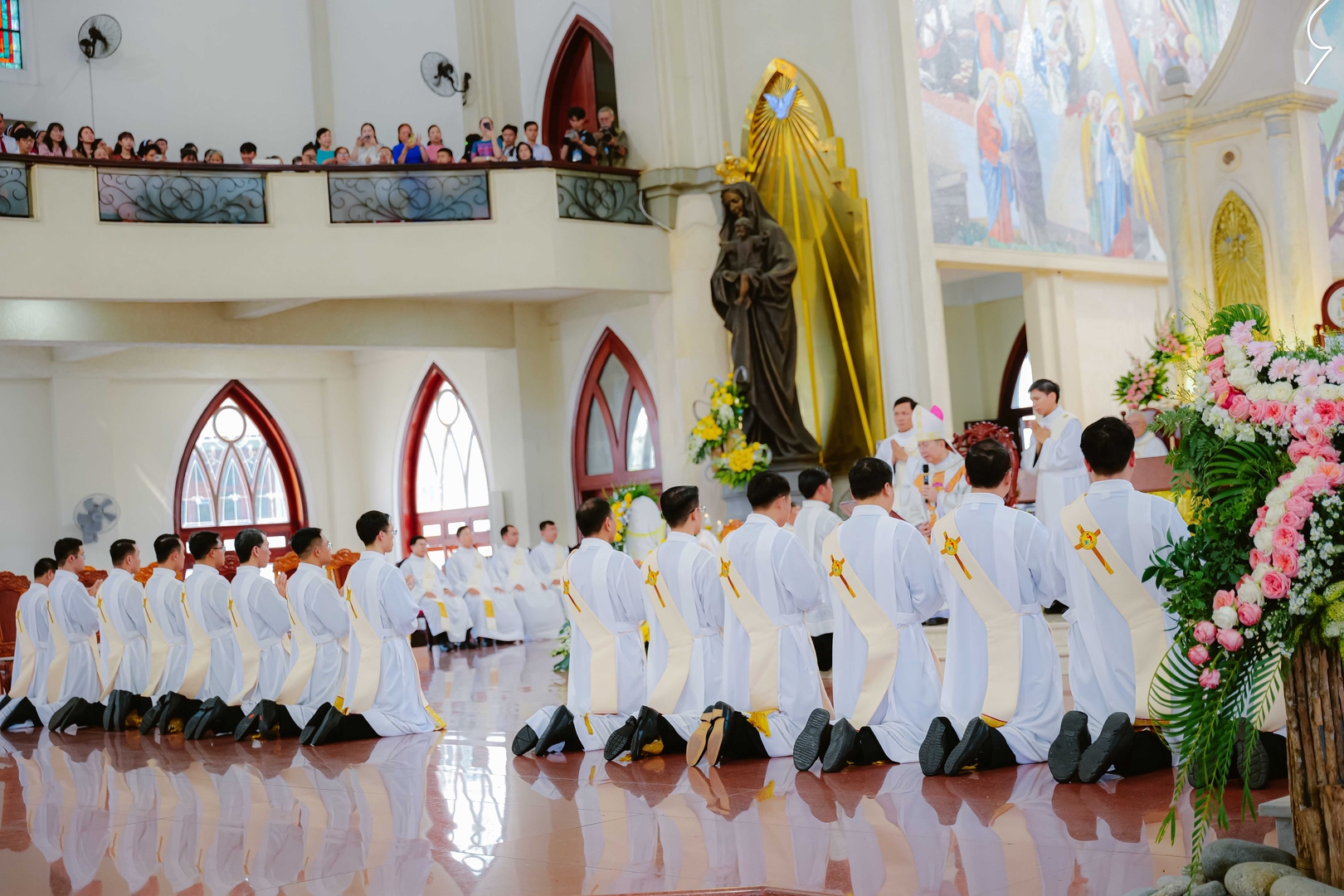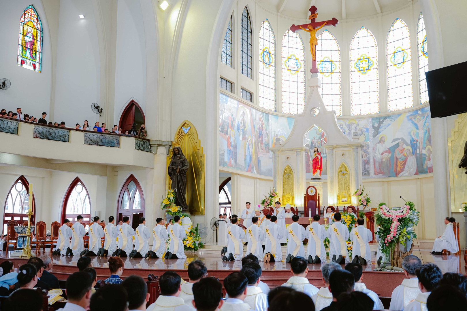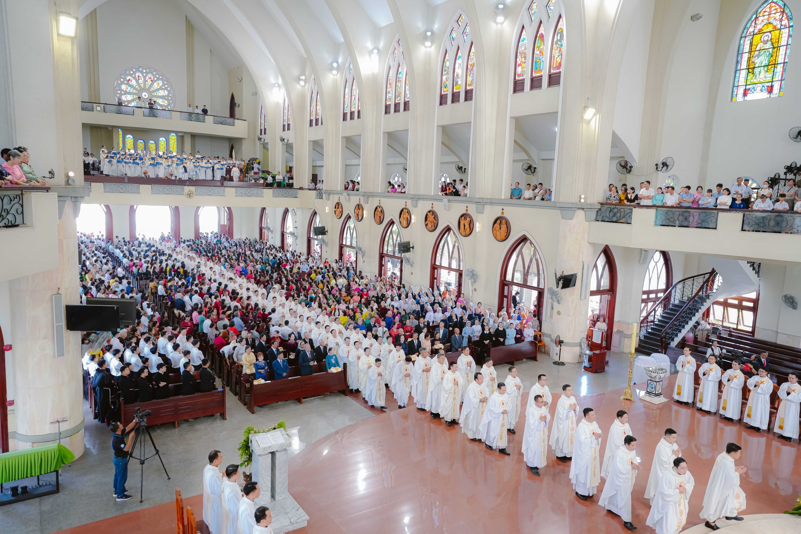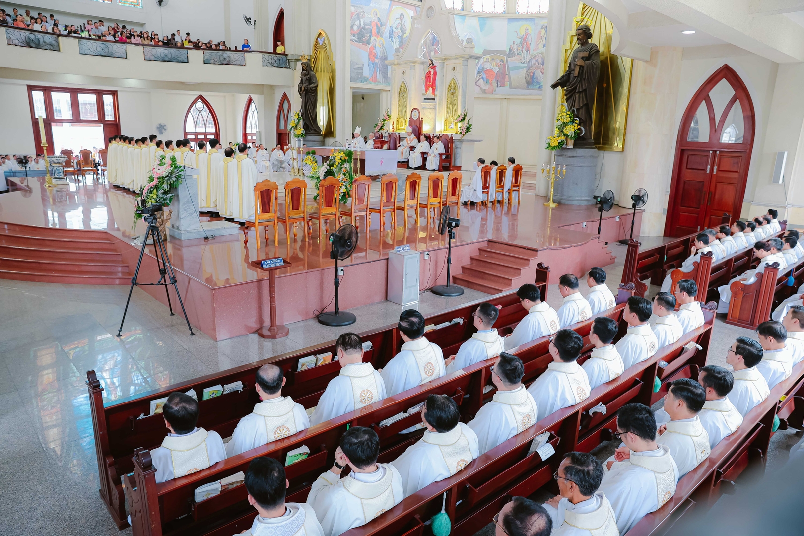 Nhà thờ Chánh Tòa Phú Cường, 09/4/2026 – Vào lúc 8g30, Thánh lễ phong chức Linh mục được cử hành tại Nhà thờ Chánh Tòa Phú Cường, do Đức cha Giuse Nguyễn Tấn Tước – Giám mục Giáo phận Phú Cường – chủ sự. Đồng tế trên bàn thờ với Đức cha Giuse có: Đức cha Phêrô Trần Đình Tứ – nguyên Giám mục Giáo phận Phú Cường, cha Tổng đại diện Gioakim Lê Công Thành, cha Giám đốc Đại Chủng viện Thánh Giuse Sài Gòn, cha Bề trên Dòng Mẹ Chúa Cứu Chuộc, cùng hơn 160 linh mục trong và ngoài Giáo phận. Hiện diện trong Thánh lễ còn có đông đảo quý tu sĩ nam nữ, gia đình, thân nhân và ân nhân của quý tân chức, cùng bà con giáo dân tham dự.