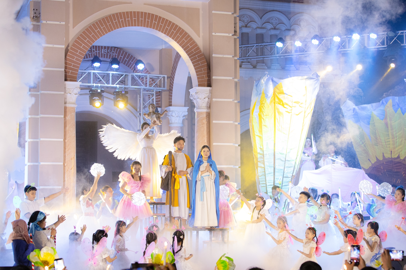 Trong khuôn khổ chuẩn bị đó, vào lúc 19g00 ngày 24/12/2024, chương trình diễn nguyện Giáng Sinh được cử hành, tái hiện lại dòng lịch sử cứu độ từ khi con người sa ngã vì tội nguyên tổ cho đến biến cố Con Thiên Chúa giáng sinh làm người. Qua các trình thuật Kinh Thánh, cộng đoàn được dẫn vào mầu nhiệm Thiên Chúa thực hiện lời hứa cứu độ nhân loại, bắt đầu từ lời truyền tin của sứ thần với Đức Maria, lời thưa “Xin Vâng” của Mẹ, sự vâng phục và trung tín của thánh Giuse, cho đến hành trình trở về Bêlem và việc Hài Nhi Giêsu chào đời trong hang đá.