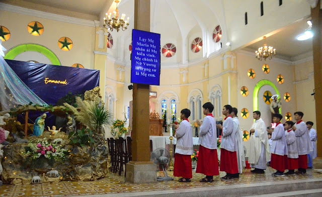 Thánh lễ được cử hành vào lúc 05g00 do Cha sở Gioakim chủ tế, cùng Cha phó Giuse Nguyễn Thanh Long đồng tế. Cộng đoàn cùng cất lời ca kinh Vinh Danh, dâng lên Thiên Chúa tâm tình tạ ơn vì một năm đã qua, với nhiều biến chuyển trong đời sống cá nhân và xã hội, đồng thời phó thác năm mới trong niềm tin vào sự quan phòng của Thiên Chúa.