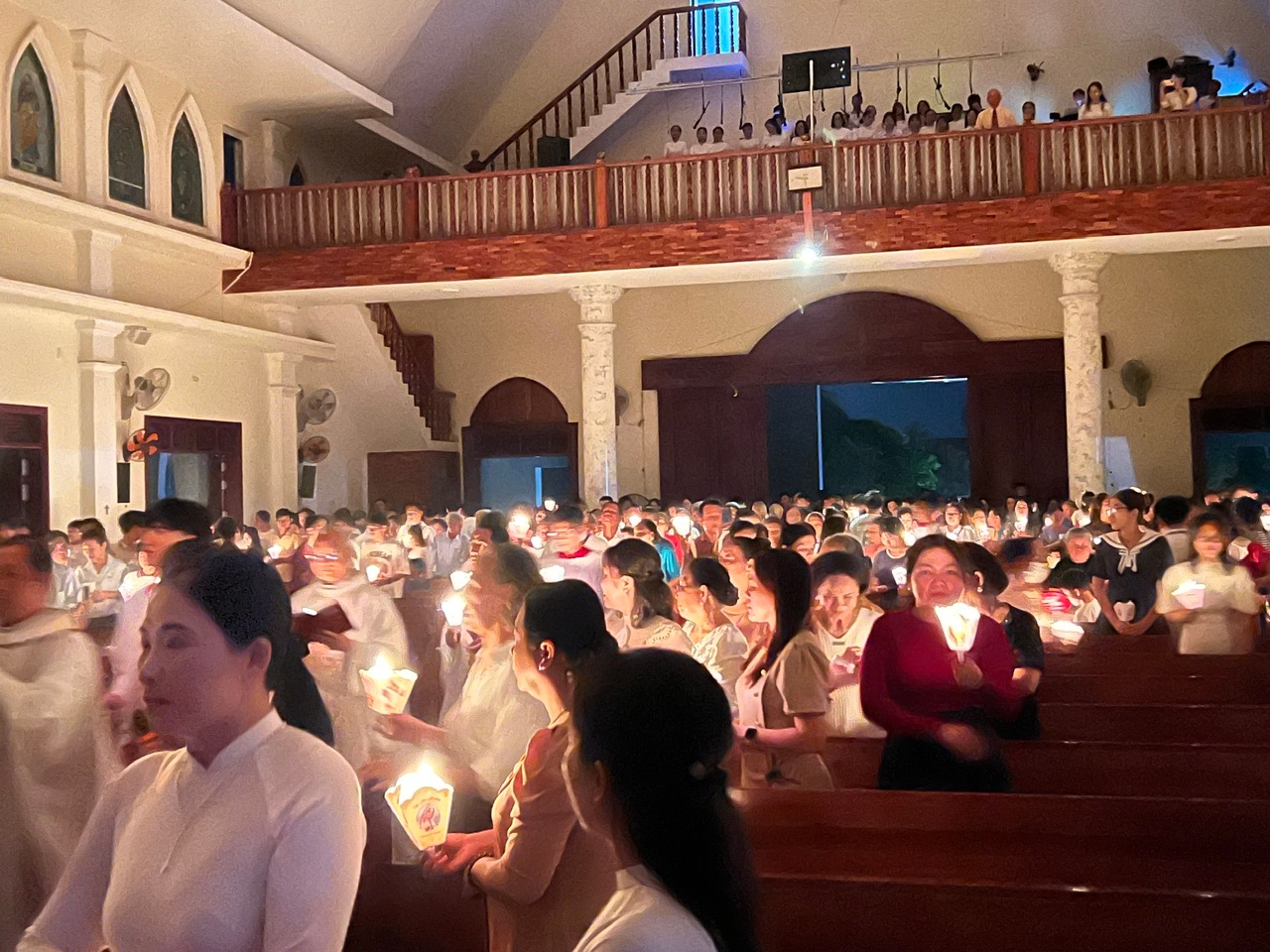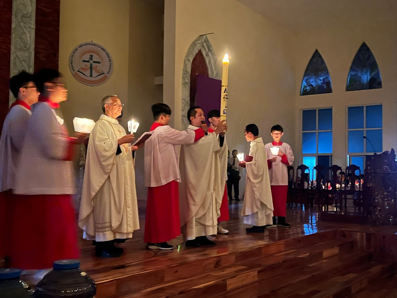 Sau nghi thức thắp Nến Phục Sinh, Cha phụ tá Giuse cầm Nến Phục Sinh cùng lễ sinh rước “Ánh sáng Chúa Kitô” vào trong nhà thờ. Cộng đoàn đáp ba lần “Tạ ơn Chúa”. Ngọn lửa từ cây Nến Phục Sinh được lan tỏa xuống từng hàng ghế, cháy sáng trong tay mỗi người tham dự.