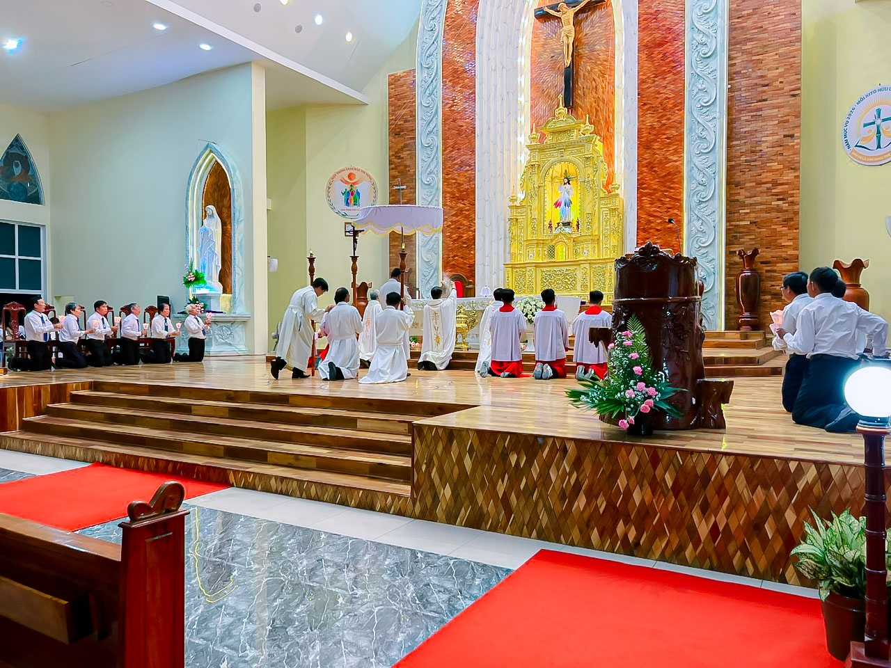 Giáo xứ Dầu Tiếng, 02/04/2026 – Vào lúc 18g30, hiệp thông cùng toàn thể Giáo Hội, cộng đoàn dân Chúa đã sốt sắng cử hành Thánh lễ Tiệc Ly, tưởng niệm bữa ăn cuối cùng của Chúa Giêsu với các môn đệ, trong đó Người đã thiết lập Bí tích Thánh Thể, Bí tích Truyền Chức Thánh và trao ban giới răn yêu thương.