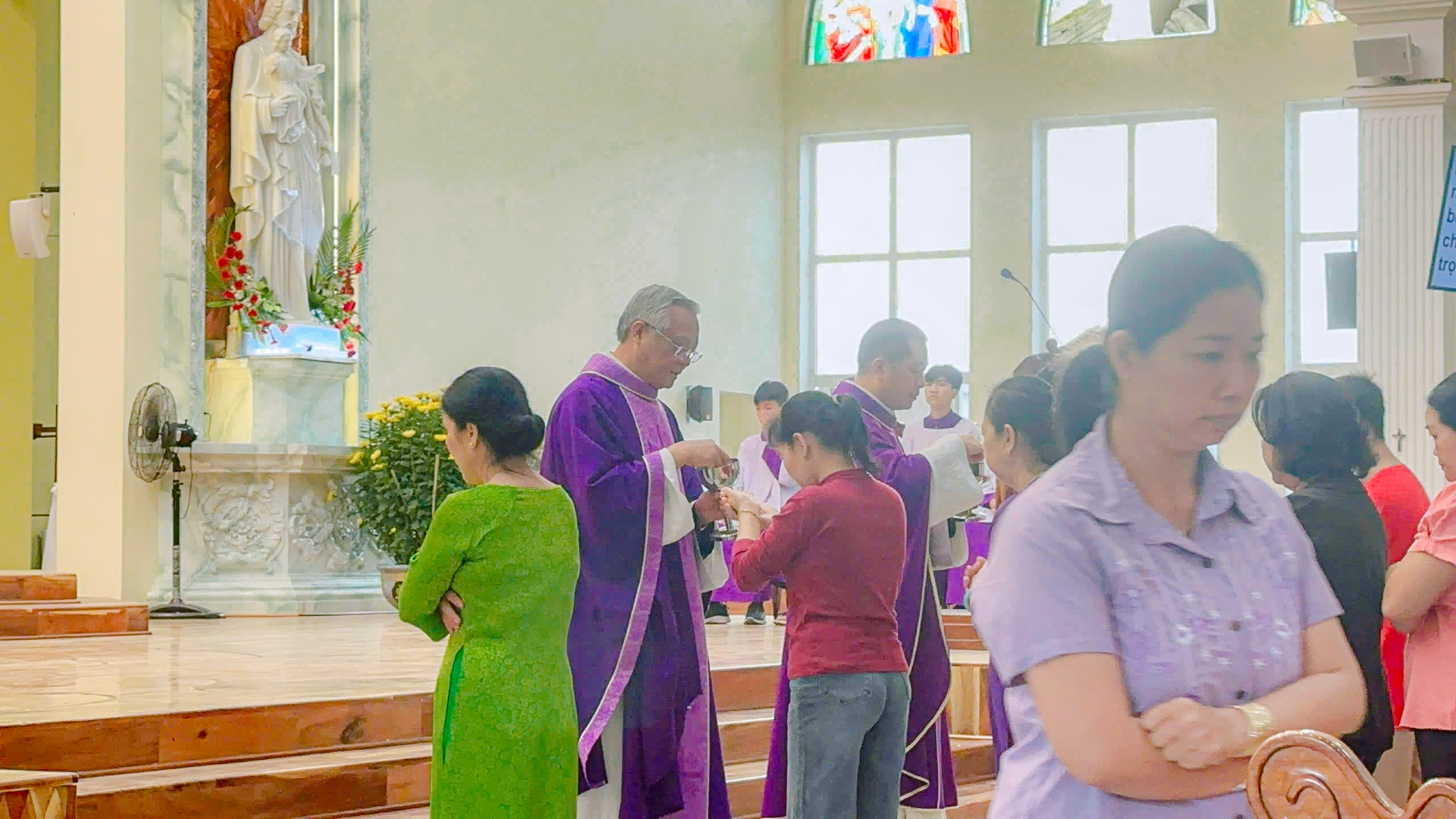 Sau phần Phụng vụ Lời Chúa là nghi thức xức tro. Từng đoàn người khiêm tốn tiến lên lãnh nhận dấu thánh giá bằng tro trên trán, cùng với lời nhắc nhở: “Hãy sám hối và tin vào Tin Mừng”. Lời mời gọi ấy giúp mỗi người ý thức trở về với Chúa, thành tâm hoán cải và đổi mới đời sống, để bước vào Mùa Chay trong tinh thần cầu nguyện và thực hành Tin Mừng cách cụ thể.