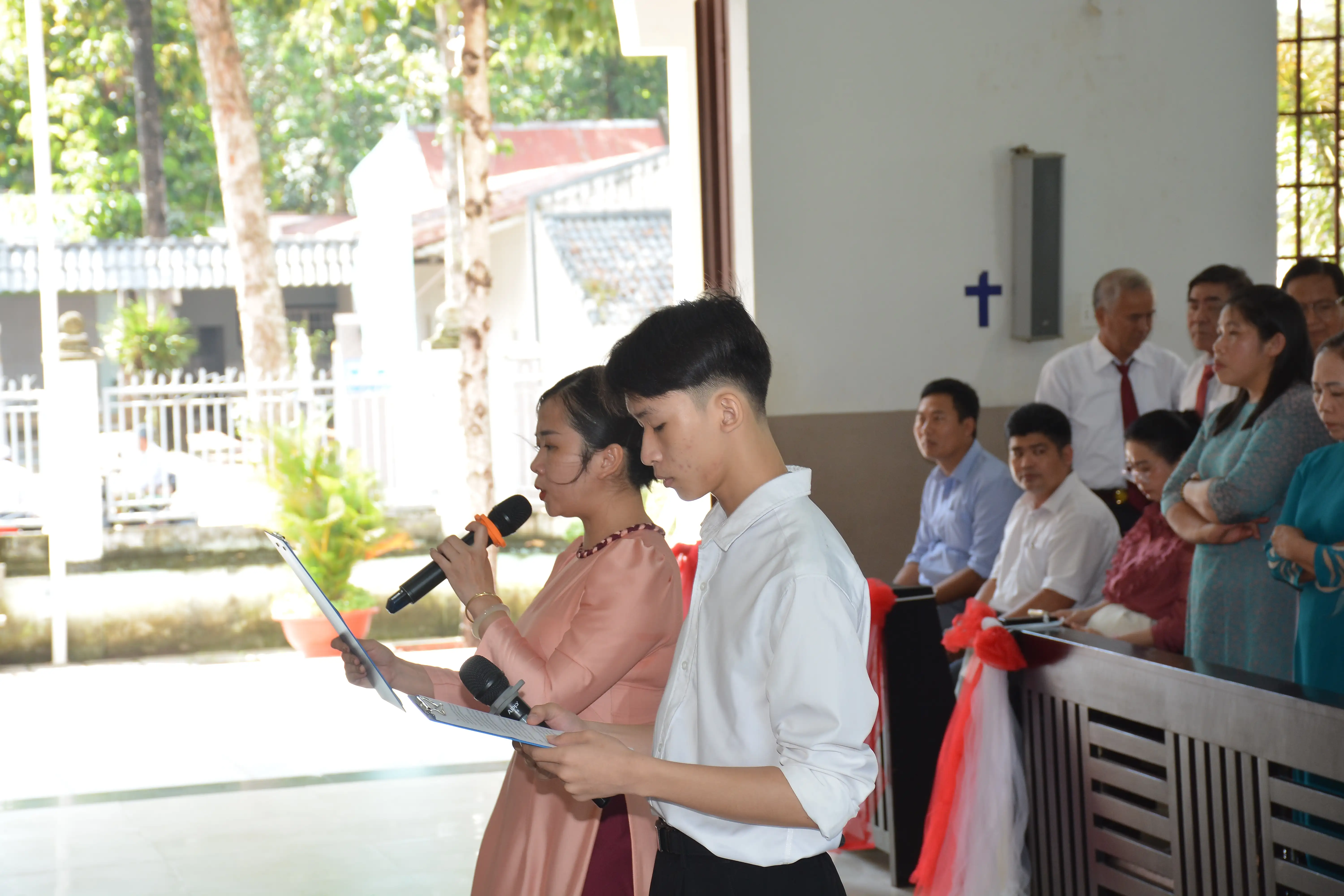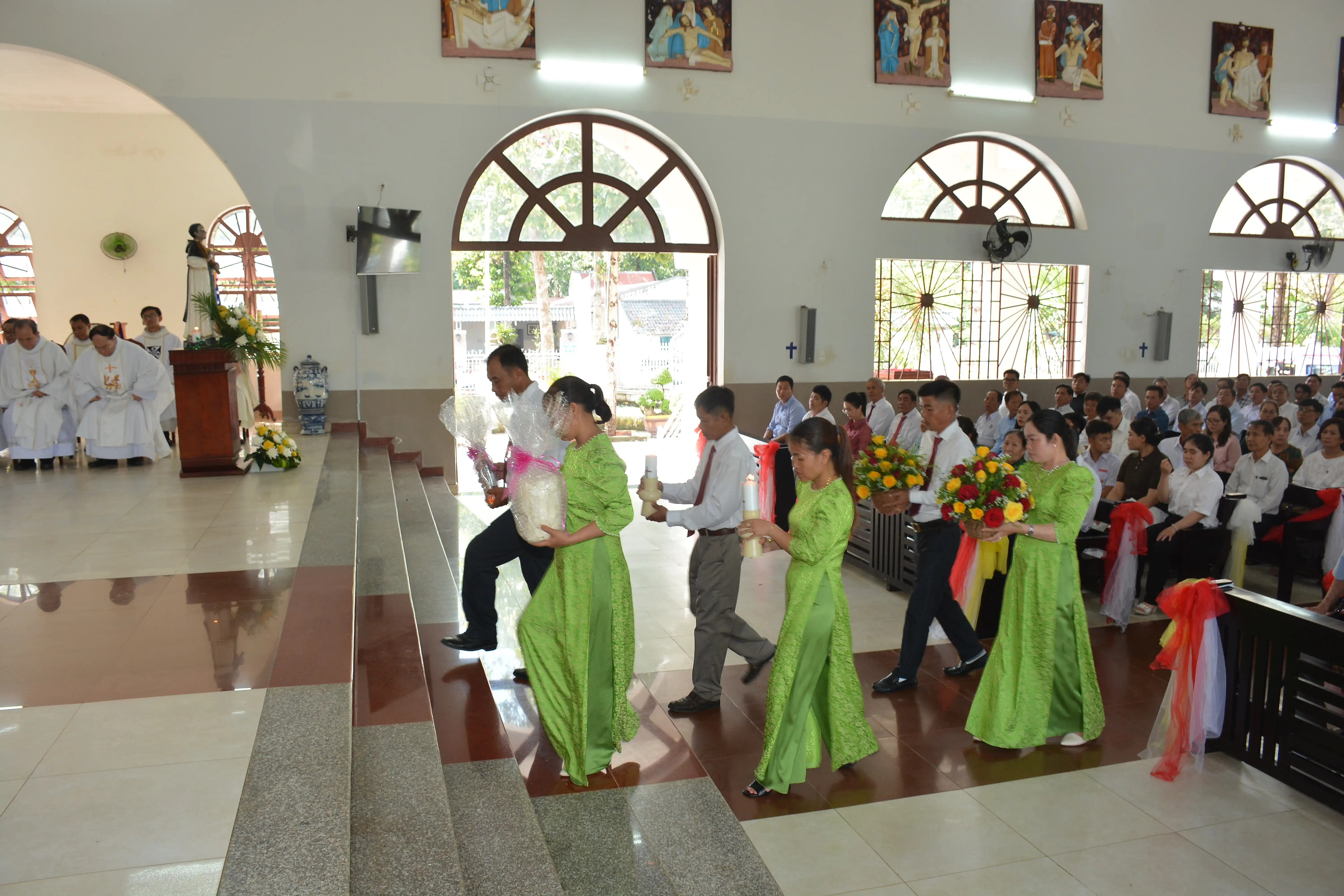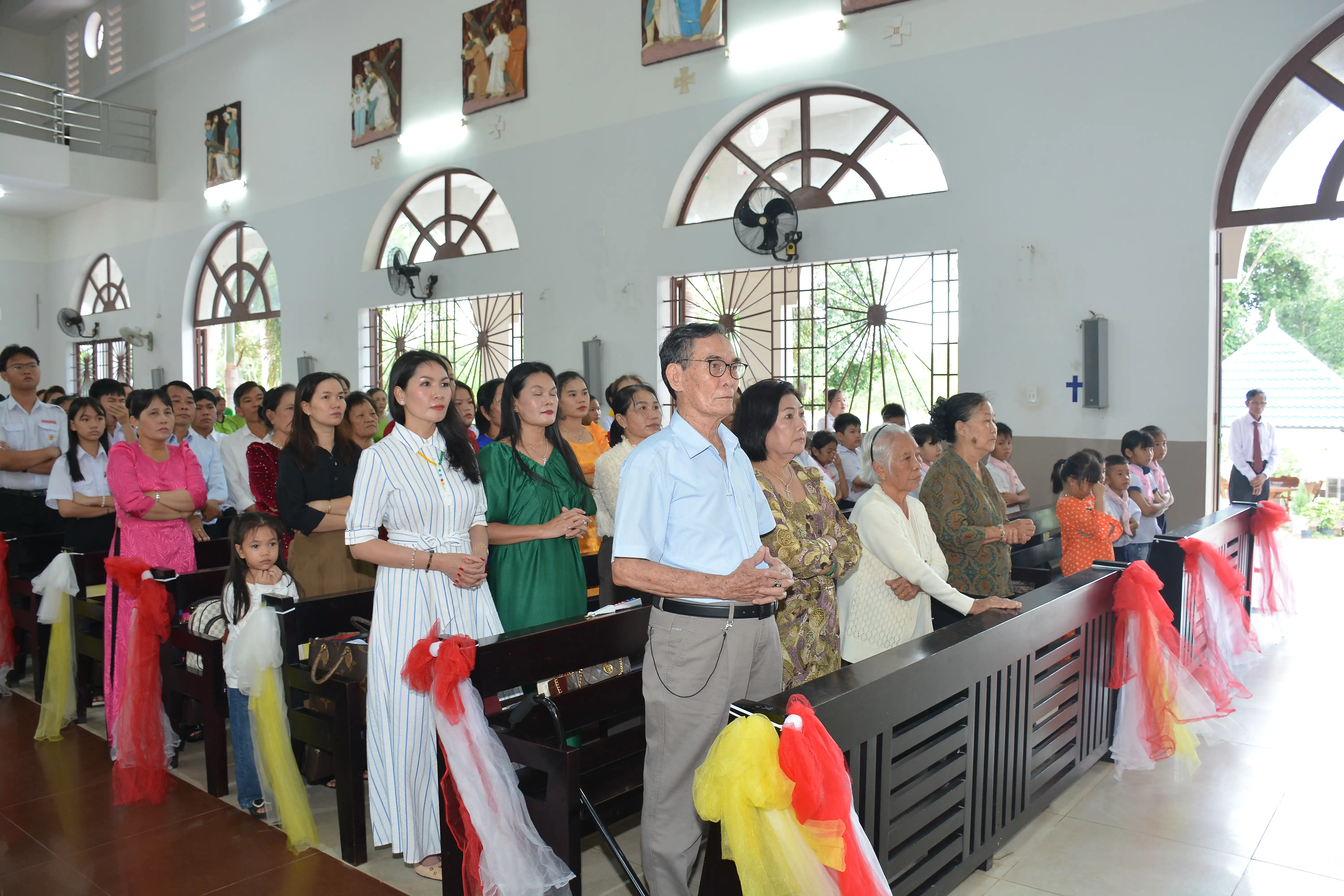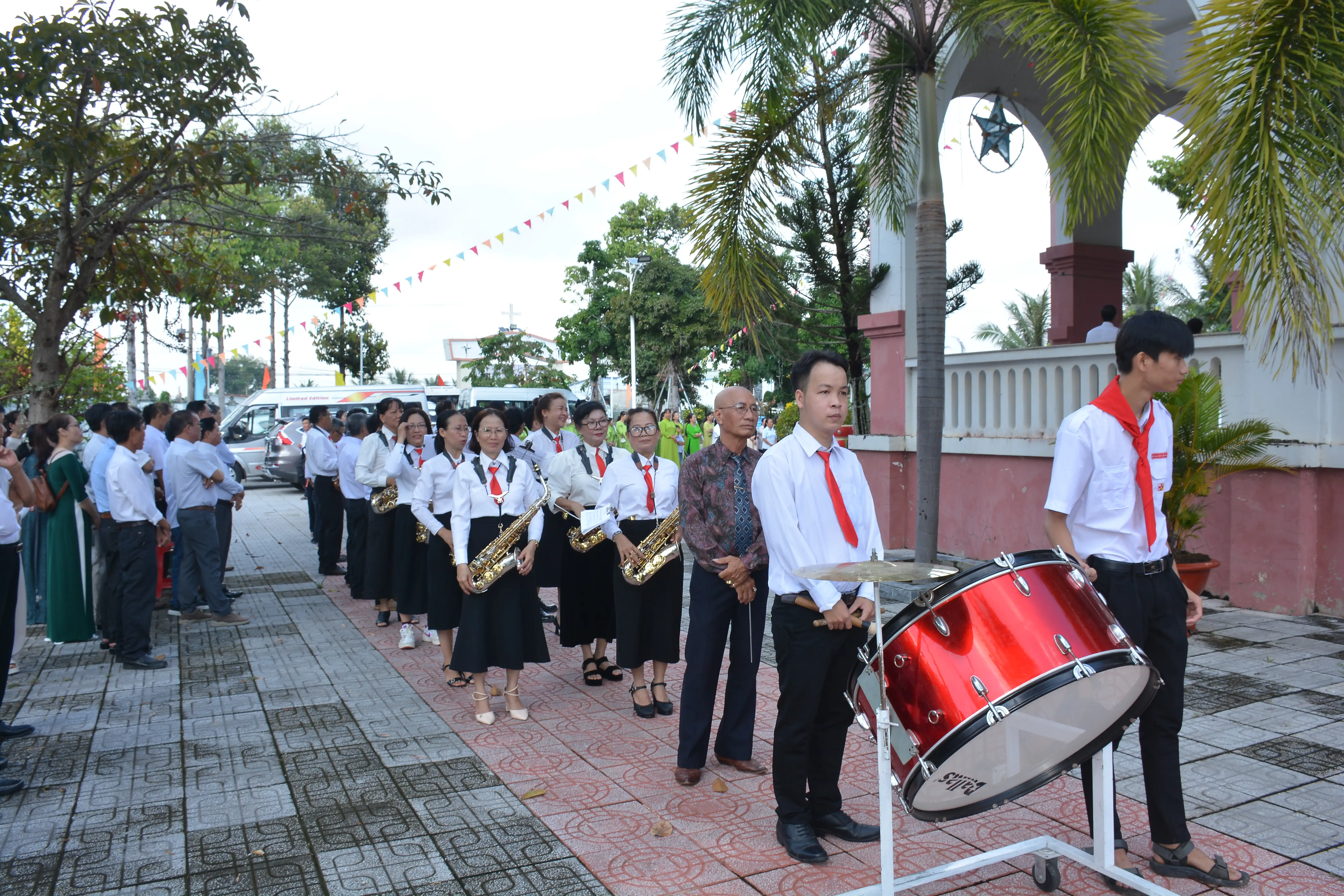 Từ sáng sớm, bà con giáo dân cùng Cha Chánh xứ Giuse Trần Văn Đông, OP và Cha Phó Giuse Phạm Bình Phát, OP hân hoan đón tiếp quý cha đồng tế, quý tu sĩ, quý khách và đặc biệt là Cha Antôn Phạm Quang Sáng, Quản hạt Tây Ninh – chủ sự Thánh lễ. Đúng 9g00, đoàn rước kiệu Thánh Martino trang nghiêm tiến quanh thánh đường: đi đầu là Thánh giá nến cao, tiếp theo là hội trống, hội kèn Giáo xứ Vinh Sơn, các tu sĩ nam nữ, giáo dân, kiệu Thánh Martino và sau cùng là đoàn đồng tế tiến vào nhà thờ trong bầu khí linh thiêng.