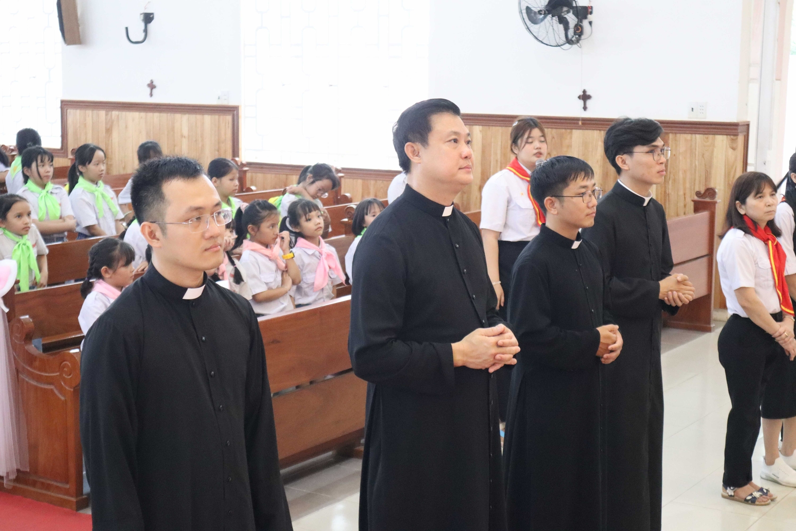 Trong Thánh lễ, cộng đoàn cũng hiệp ý cầu chúc những điều tốt đẹp đến hai Thầy Vincentê Mai Văn Dương và Antôn Nguyễn Hữu Cường (thuộc Dòng Linh mục Thánh Tâm Chúa Giêsu). Sau giờ sinh hoạt cùng các em Thiếu Nhi Thánh Thể, vào lúc 10g30, hai Thầy trở về nhà cộng đoàn để tiếp tục hành trình tu học, khép lại bốn ngày đồng hành cùng giáo xứ trong Tam nhật Thánh 2026.