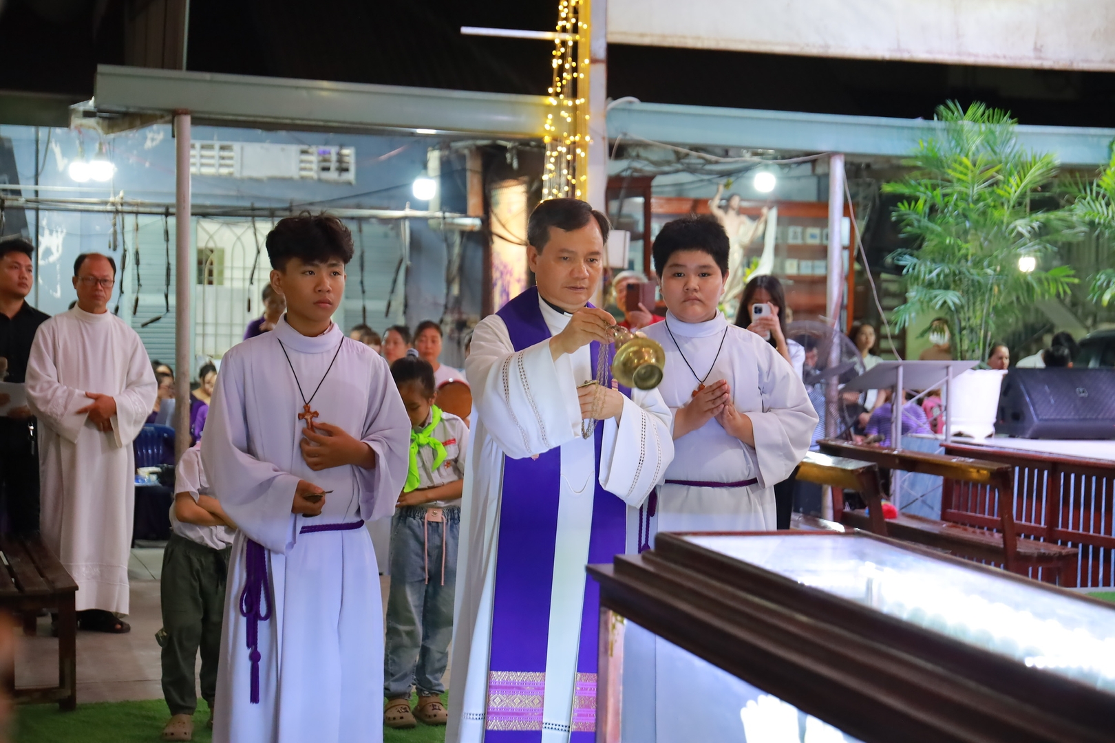 Giáo xứ Tân Thạnh Đông, 03/4/2026 – Vào lúc 18g00, tại Giáo xứ Tân Thạnh Đông, Cha Chánh xứ Phêrô Nguyễn Thái Học và Cha Đa Minh Bùi Công Tự đã cùng cộng đoàn cử hành các nghi thức tưởng niệm cuộc Thương Khó của Chúa Giêsu.
