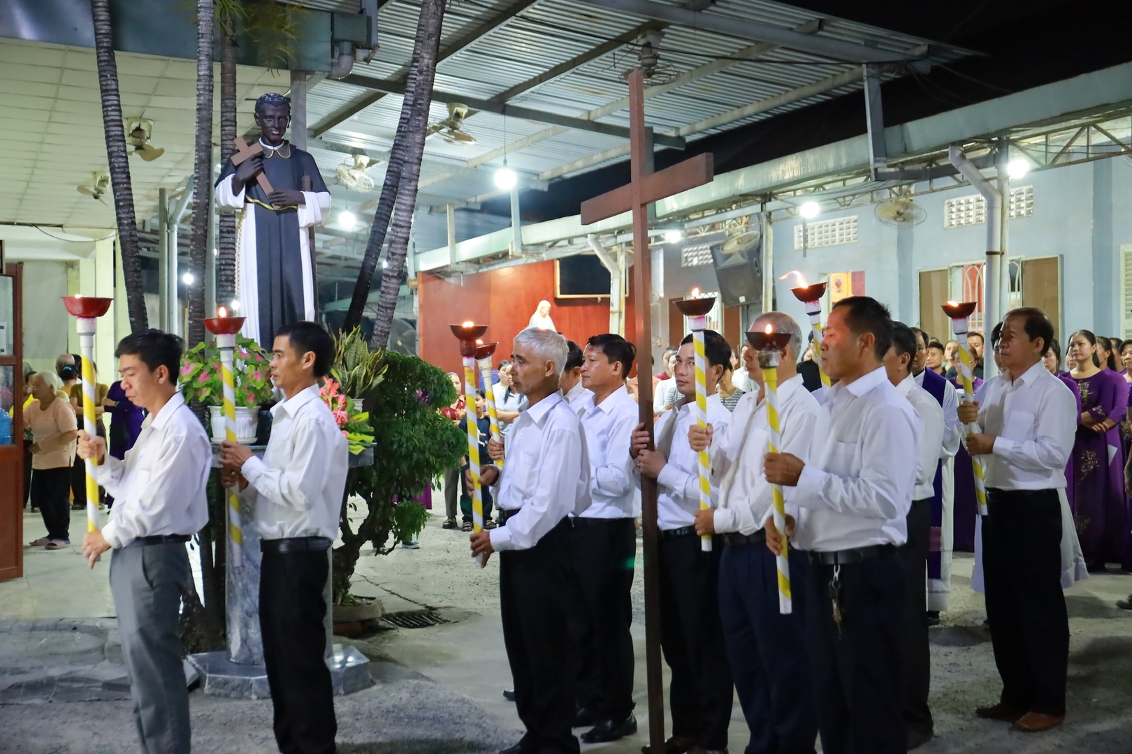 Sau phần cử hành Cuộc Thương Khó, cộng đoàn cùng nhau đi Đàng Thánh Giá trọng thể. Từng chặng Đường Thập Giá được tái hiện qua lời kinh và suy niệm, từ lời kết án bất công, những đòn roi, mão gai cho đến hành trình vác Thập Giá. Mỗi chặng đường là một lời cầu nguyện, giúp cộng đoàn hiệp thông với con đường khổ nạn mà Chúa đã đi qua vì nhân loại.