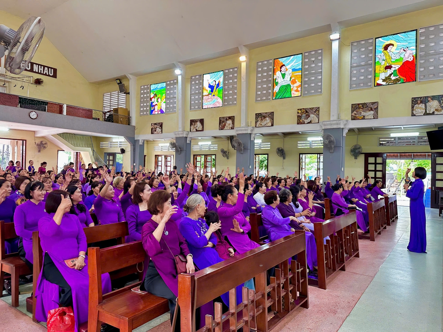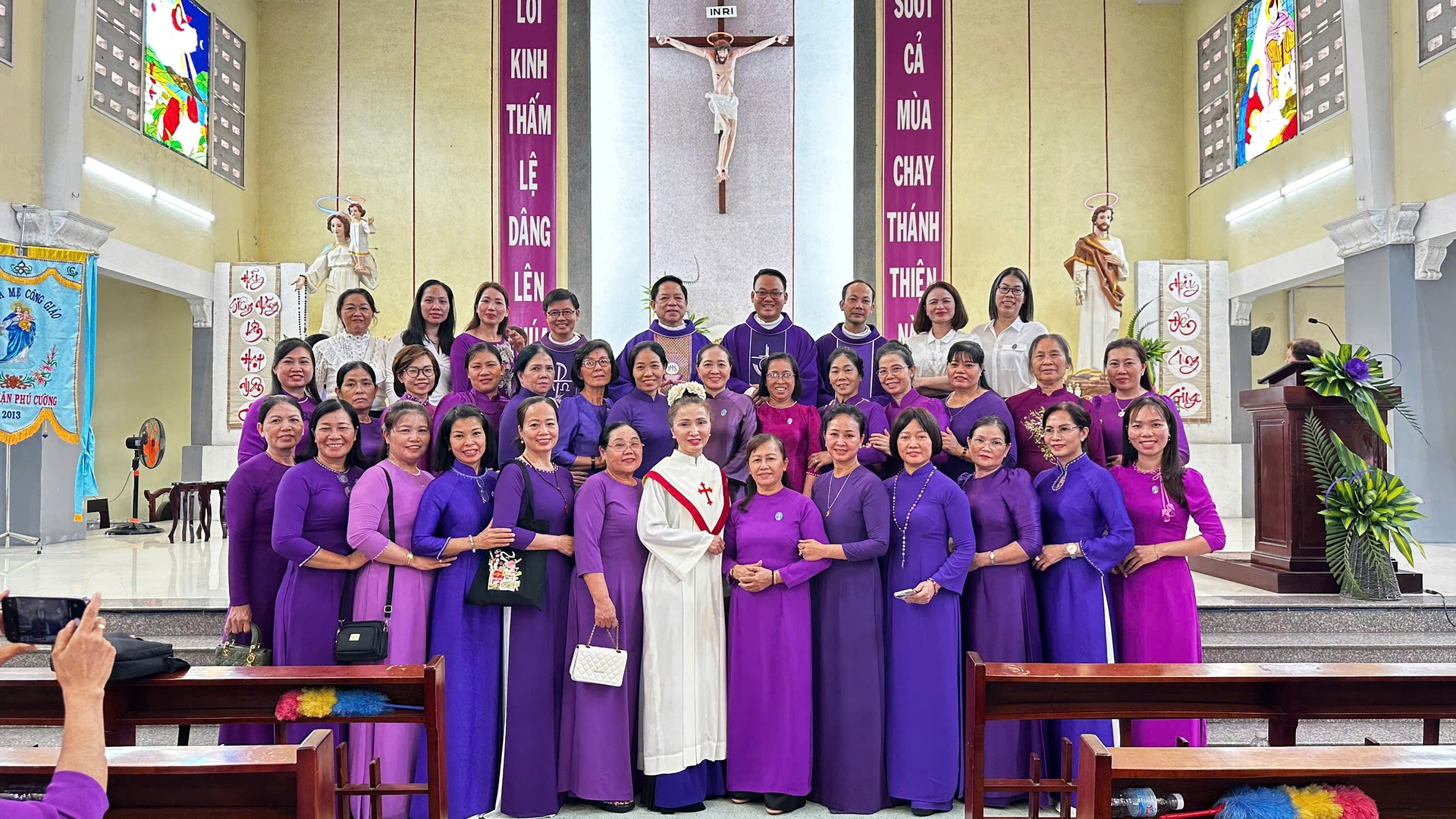 Giáo xứ Bến Sắn, 21/03/2026 – Ngay từ lúc 8g00, các chị em Hiền Mẫu thuộc các giáo xứ trong Giáo hạt Phú Cường đã có mặt đông đảo tại khuôn viên Giáo xứ Bến Sắn trong bầu khí thật vui tươi. Các chị em tiến vào thánh đường và chào đón nhau, như một dấu chỉ của tình hiệp thông và niềm vui được gặp gỡ trong Chúa.