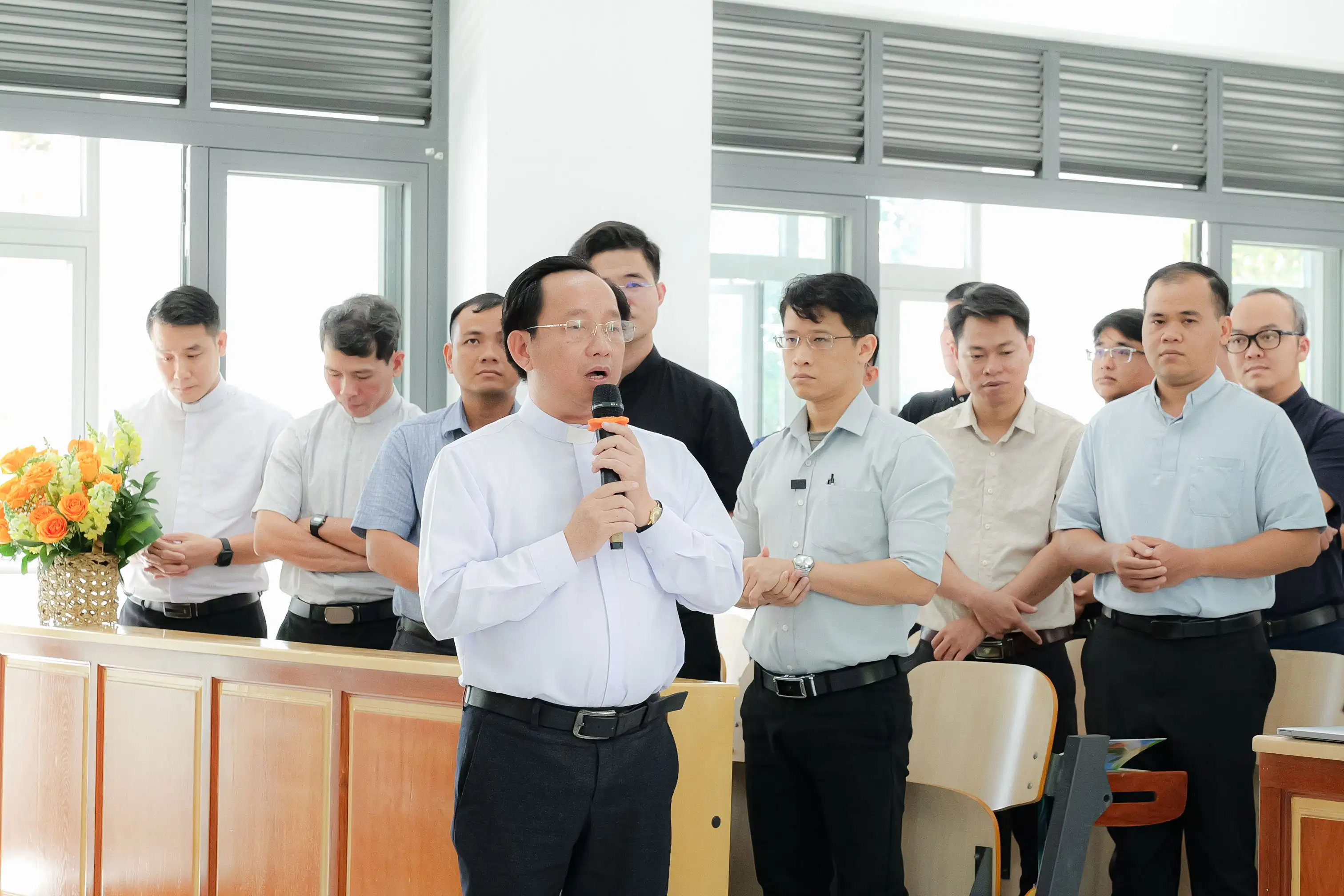 Sau đó, quý cha tiến lên nhà nguyện viếng Thánh Thể và đọc Kinh Trưa, rồi cùng nhau sang nhà ăn của Cơ sở Đào tạo dùng bữa trưa huynh đệ.