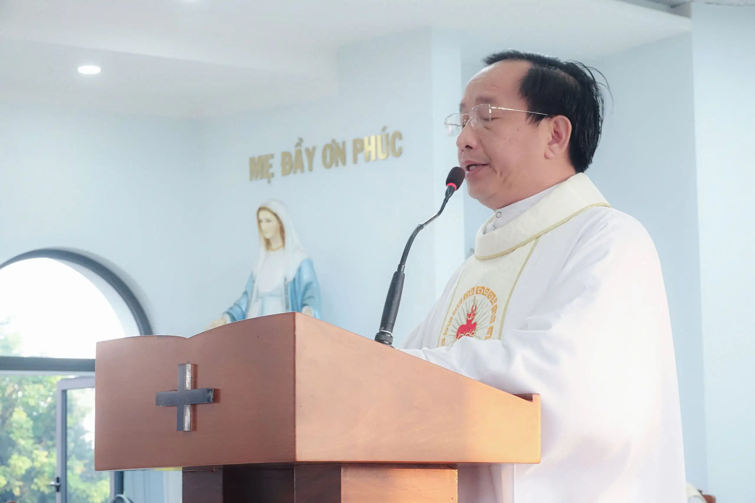 Trong phần chia sẻ Lời Chúa, Cha Tổng Đại diện Gioakim Lê Công Thành đã chia sẻ ngắn gọn và nhấn mạnh ba điểm chính: