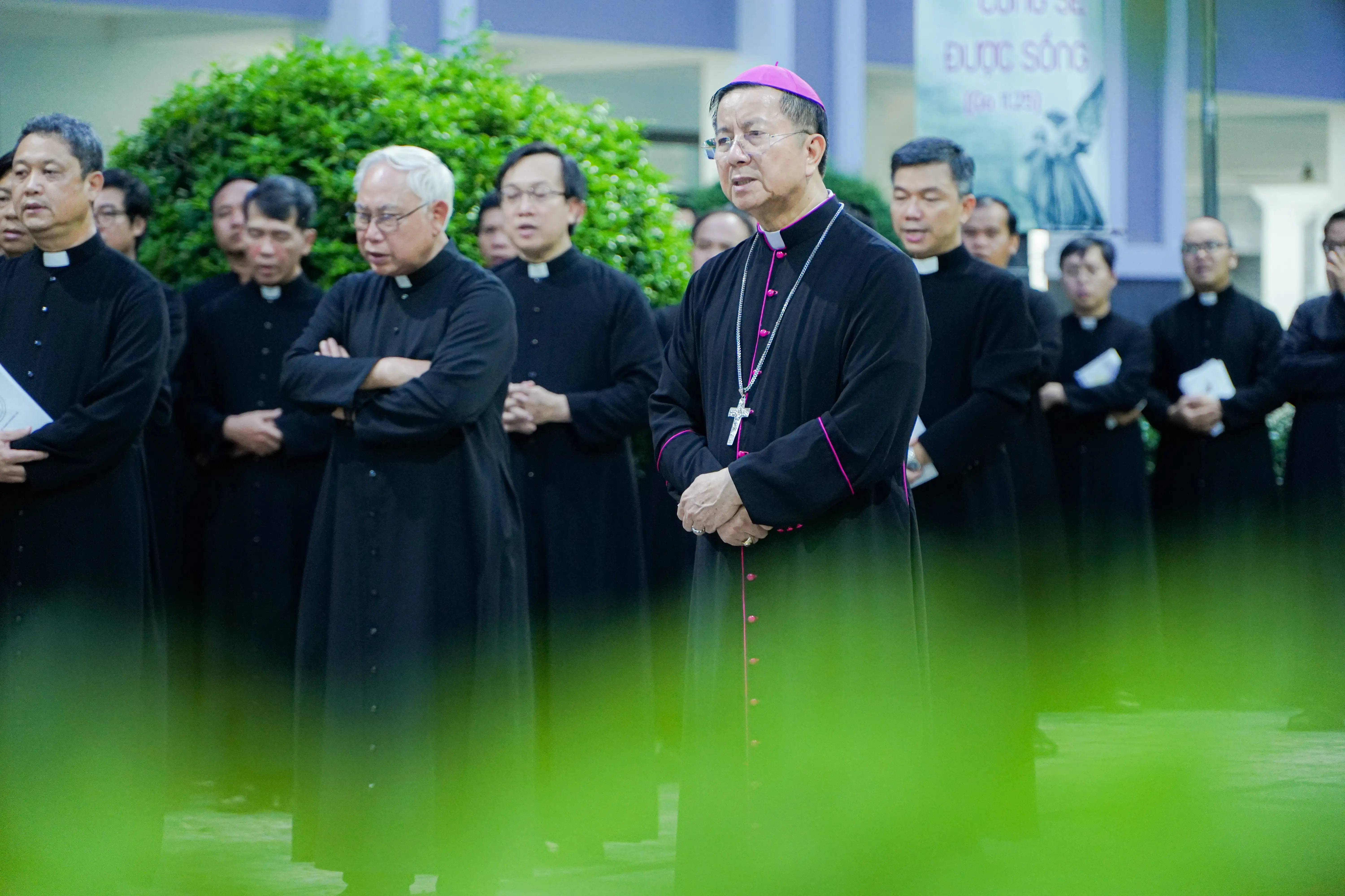 Ngay sau đó, toàn thể linh mục đoàn cùng đọc Kinh Chiều tại hội trường. Sau đó quý cha di chuyển xuống phần mộ quý Đức Cha đã qua đời để dâng lời kinh và viếng mộ – một cử chỉ tri ân đối với các vị tiền nhân đã dâng hiến đời mình cho Giáo phận.