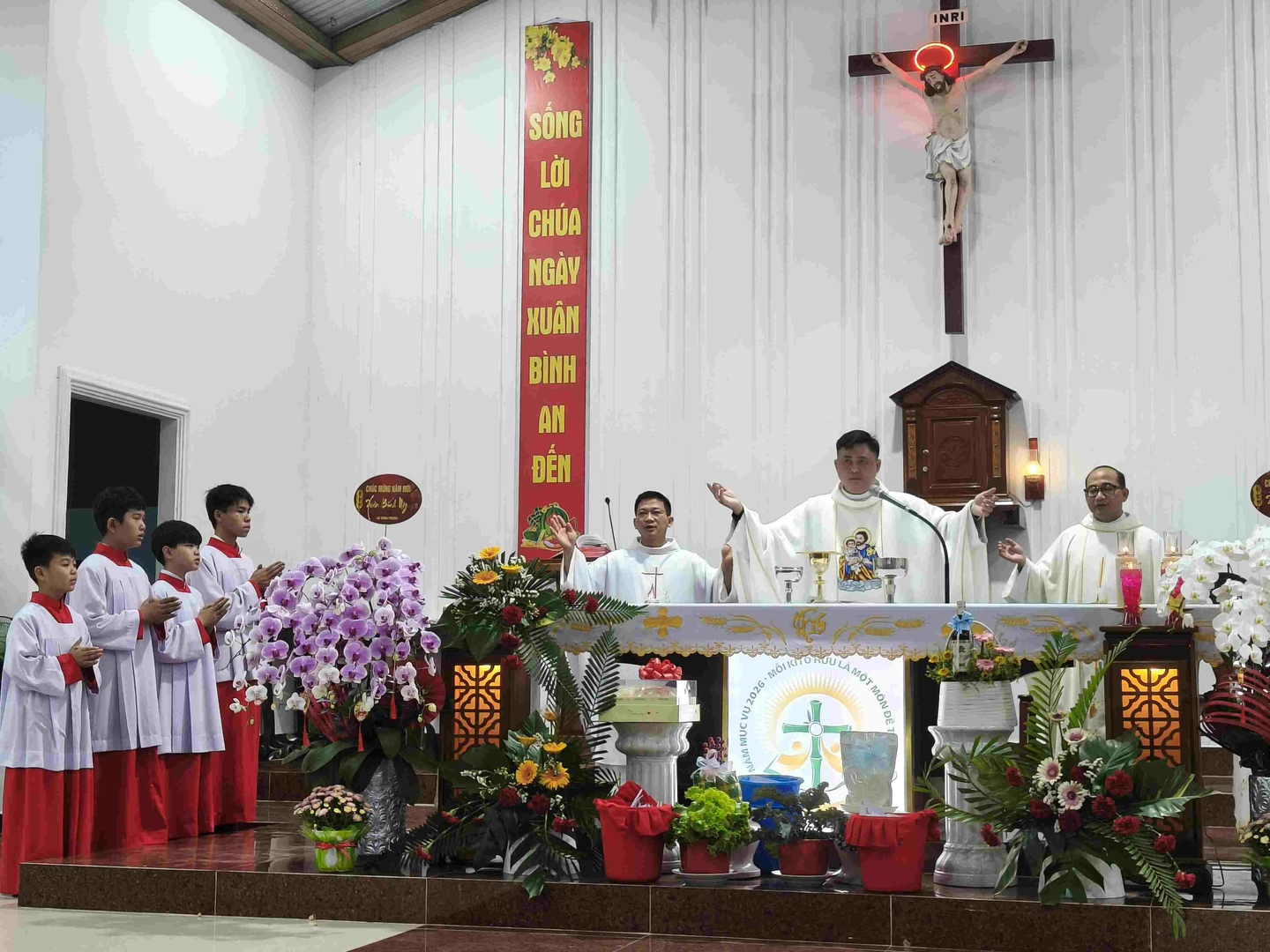 Sau bài giảng, Cha chủ tế đã làm phép và thánh hóa các công cụ lao động qua những sản vật bà con dâng tiến lên Chúa. Thánh lễ được cử hành trong tâm tình sốt sắng, mỗi người dâng lên Chúa những dự định, công việc và ước nguyện của năm mới.