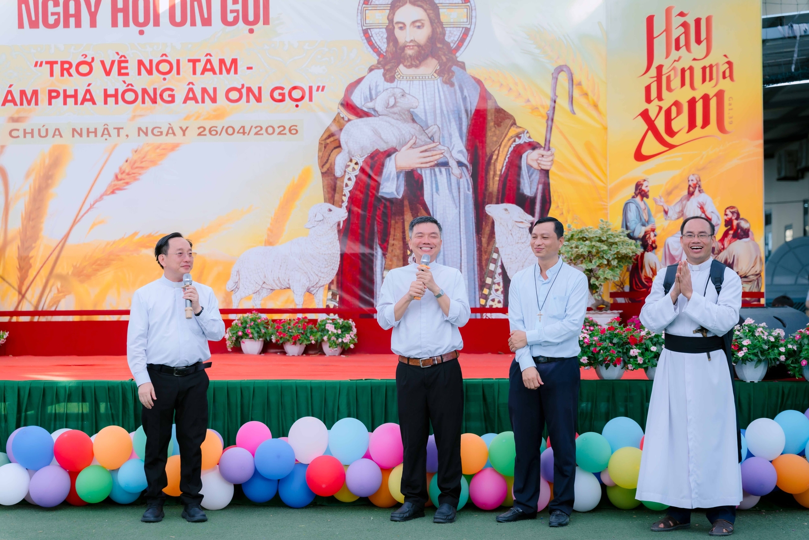 Tỉnh dòng Thừa sai Đức Tin Việt Nam, 26/04/2026 – Chúa nhật IV Phục sinh – Chúa nhật Chúa Chiên Lành, ngày Thế giới Cầu nguyện cho Ơn gọi, gần 2.000 bạn trẻ đến từ 15 giáo xứ thuộc Giáo hạt Phú Cường đã quy tụ về Tỉnh dòng Thừa sai Đức Tin Việt Nam để tham dự ngày hội ơn gọi với chủ đề “Trở về nội tâm, khám phá hồng ân ơn gọi”. Ngày hội không chỉ là một cuộc gặp gỡ mà còn là hành trình đi sâu vào tâm hồn để lắng nghe tiếng gọi yêu thương của Chúa.