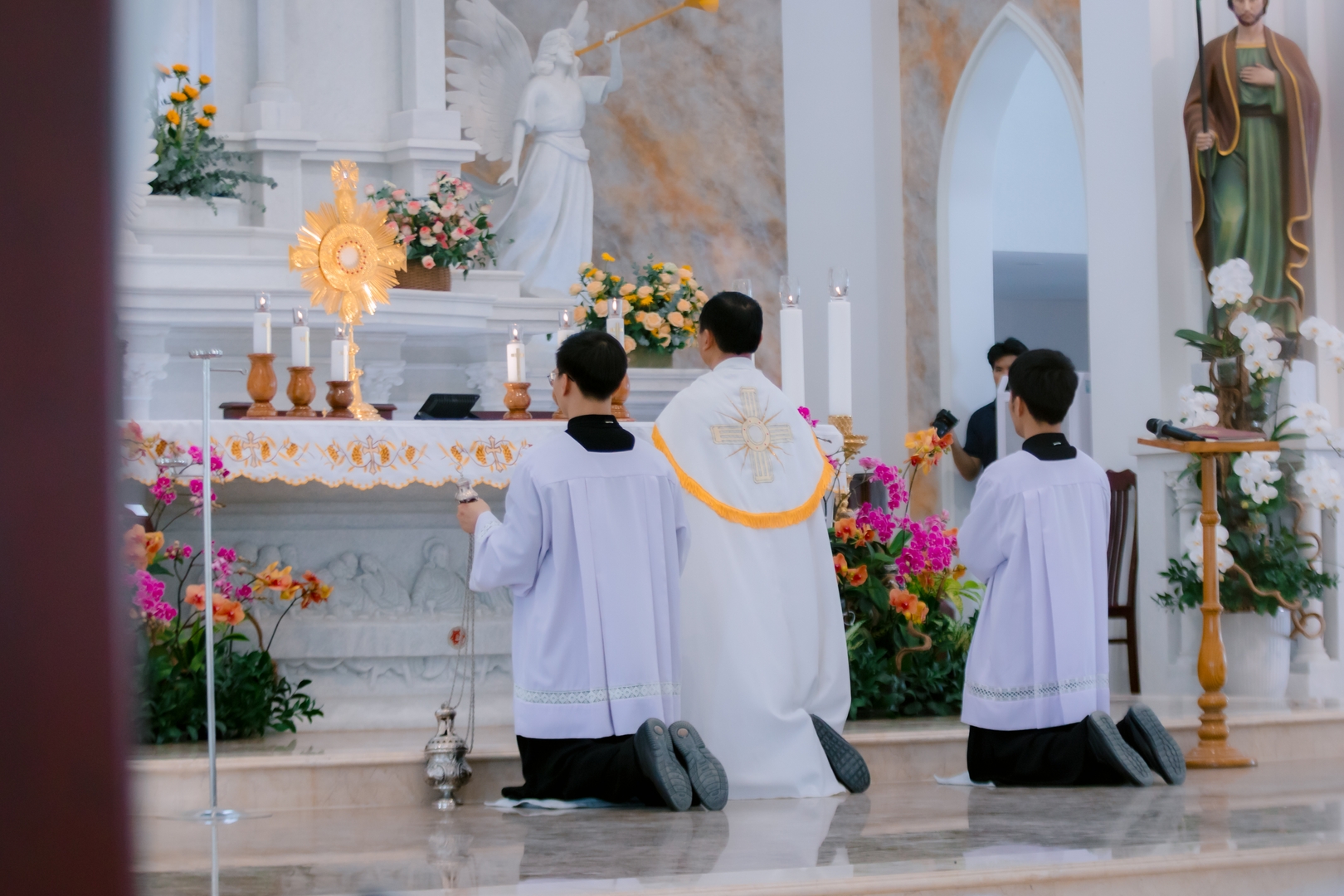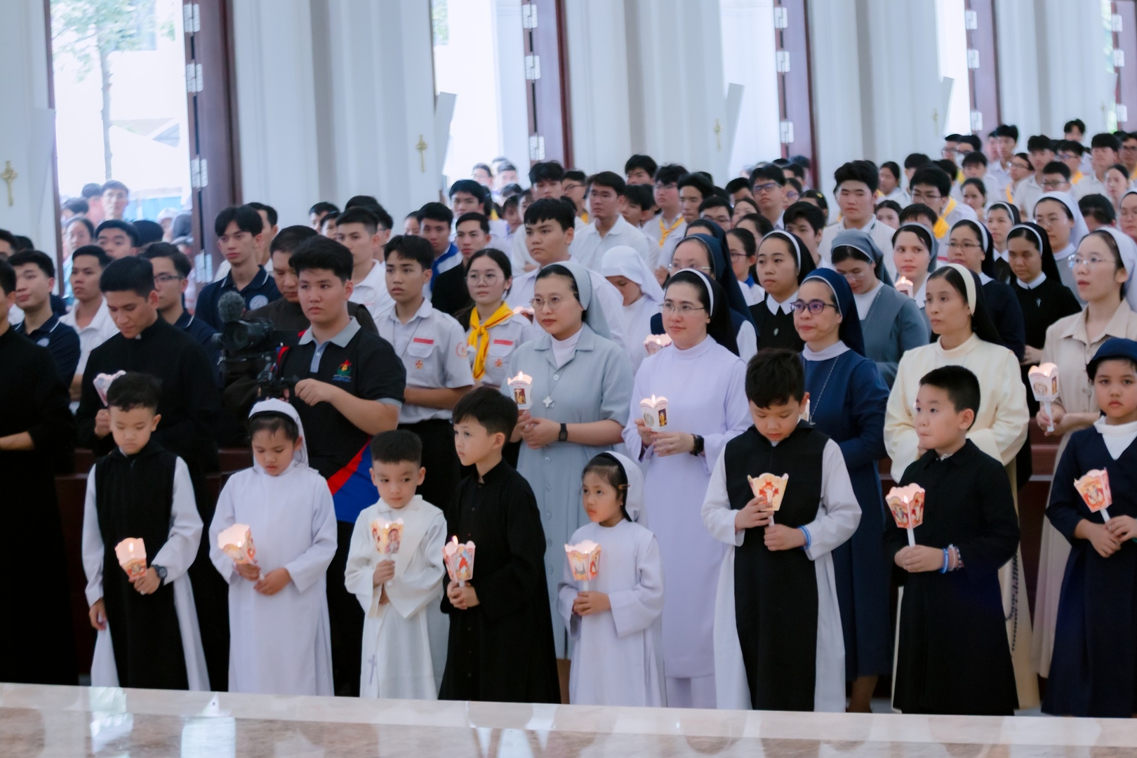 Đỉnh cao của ngày hội là thánh lễ lúc 9g00, do cha Gioakim Lê Công Thành, Tổng đại diện Giáo phận Phú Cường, chủ tế. Đây là giây phút mỗi người trẻ được kết hiệp mật thiết với Chúa Giêsu Mục Tử, nguồn mạch của mọi hồng ân ơn gọi. Trong bài giảng, cha đã chia sẻ thông điệp ngày Cầu nguyện cho Ơn thiên triệu năm nay, mời gọi các bạn trẻ can đảm đáp lại tiếng gọi của Chúa, ra đi theo Ngài sống Phúc Âm dù phải đối diện với khó khăn thử thách. Ngài cũng mời gọi cộng đoàn cầu nguyện cho các linh mục, tu sĩ đang gặp khó khăn trong đời sống thánh hiến.
