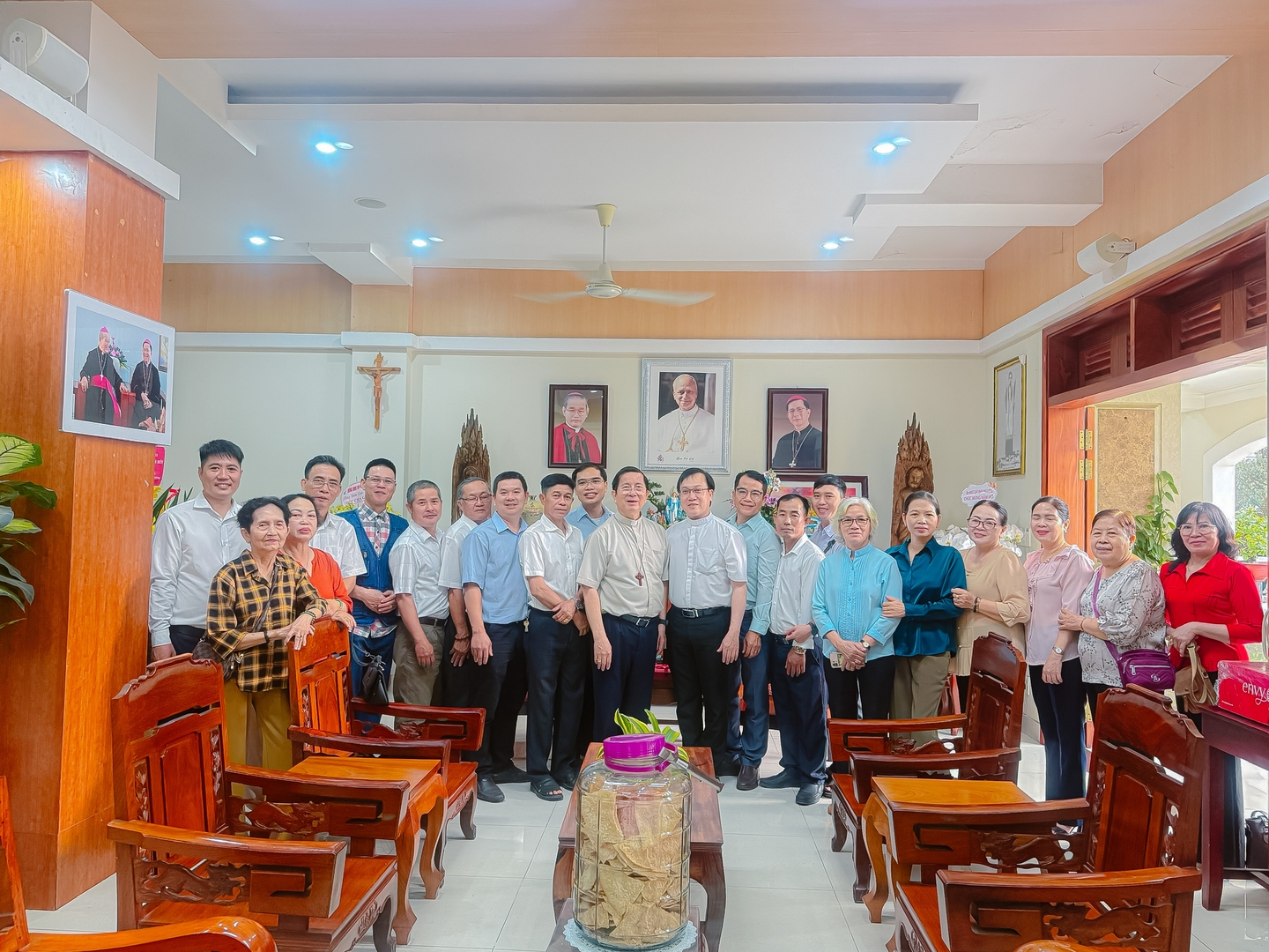 Tết đến xuân về cũng là thời khắc bày tỏ lòng tri ân. Ngày 25 tháng Chạp, ban điều hành cùng cha Đặc trách đã đến chúc Tết Đức cha Giuse - vị cha chung của Giáo phận Phú Cường. Trong bầu khí thân tình, những tâm tình kính mến được dâng lên Đức cha, và cộng đoàn hân hoan đón nhận lời chúc lành cùng niềm hy vọng mục tử ngài gửi gắm cho Giáo họ qua Ban Điều hành.