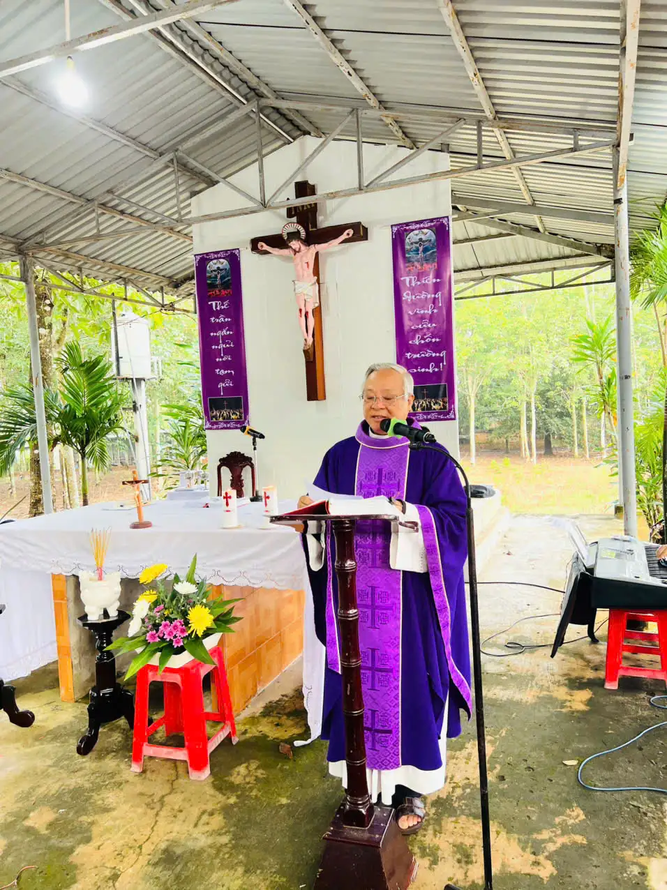 Mở đầu Thánh lễ, Cha chủ tế mời gọi cộng đoàn cùng dâng lời cầu nguyện cho các đẳng linh hồn được hưởng tôn nhan Chúa. Ngài chia sẻ: tháng 11 – tháng các linh hồn – là dịp để mỗi người tưởng nhớ, tri ân và biết ơn những hy sinh âm thầm của các bậc tiền nhân đã góp phần xây dựng giáo xứ thánh thiện và vững mạnh trong tình yêu Thiên Chúa.