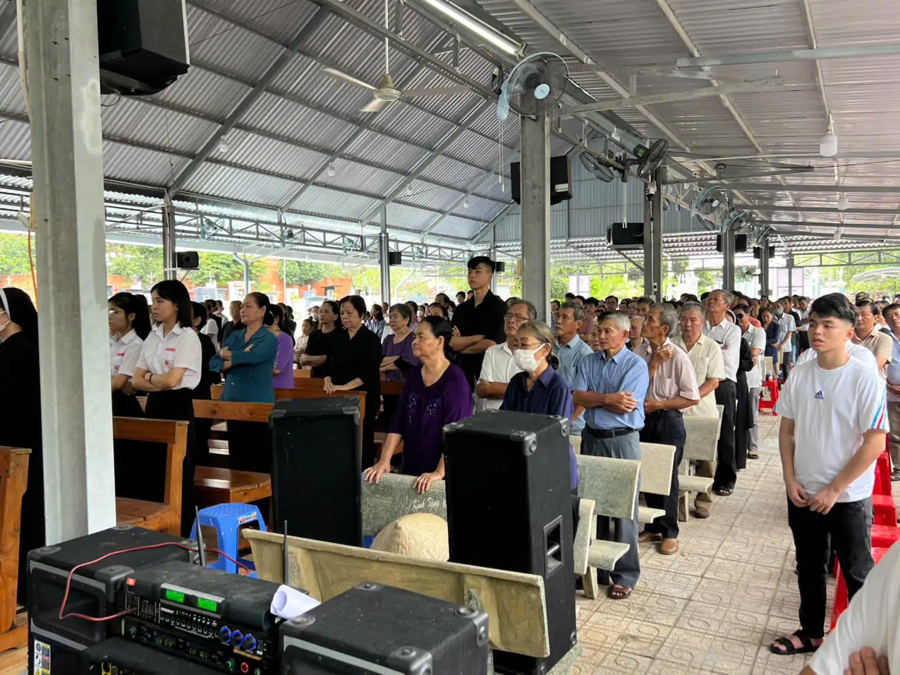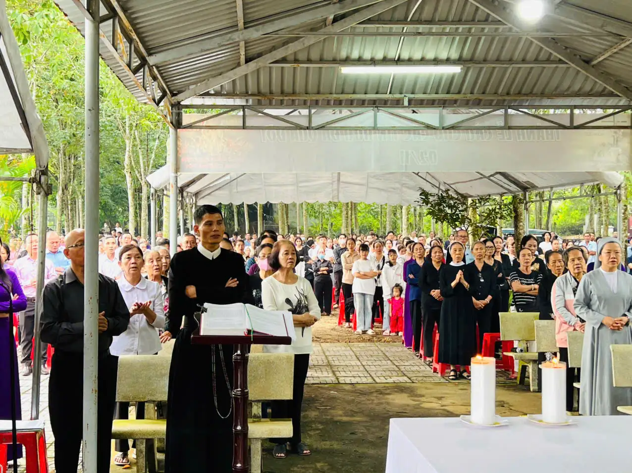 Vào lúc 14g30 Chúa Nhật, ngày 2/11/2025, tại Đất Thánh Giáo khu Mẫu Tâm, quý cha đồng tế hiệp dâng Thánh lễ cầu nguyện cho các tín hữu đã qua đời. Trước khi bước vào Thánh lễ, Cha Giuse Nguyễn Văn Thiện, CSC, chủ tế, đã gợi nhớ cho cộng đoàn phụng vụ về nguồn gốc của khu Đất Thánh Mẫu Tâm – do một ân nhân quảng đại hiến tặng từ năm 1945. Trải qua thời gian chiến tranh, qua bao thế hệ và bàn tay vun đắp, nơi đây đã trở thành một nghĩa trang khang trang, sạch đẹp và trang nghiêm bậc nhất của giáo xứ. Cha Giuse mời gọi cộng đoàn dâng lời tạ ơn Thiên Chúa và tri ân các bậc tiền nhân, xin cho những ai còn sống và đã qua đời luôn được Chúa ban muôn phúc lành.
