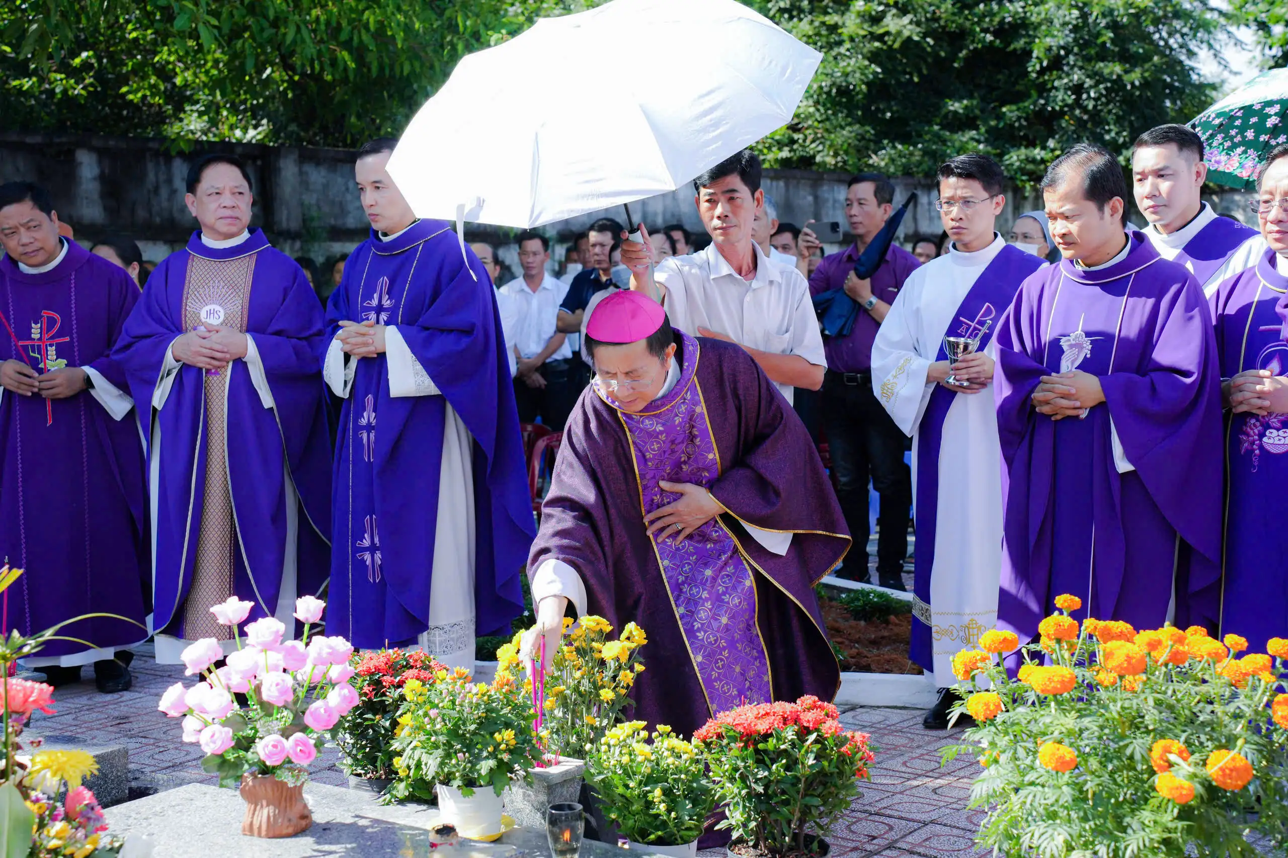 Kết thúc Thánh lễ, Đức Cha Giuse cùng toàn thể cộng đoàn sốt sắng đọc chung Kinh Lạy Cha và Kinh Tin Kính cầu nguyện cho các linh hồn. Sau đó, ngài cùng quý Cha đã rảy nước thánh và thắp hương tại phần mộ các linh mục đã qua đời, cũng như tại phần mộ của các tín hữu đang yên nghỉ trong nghĩa trang.