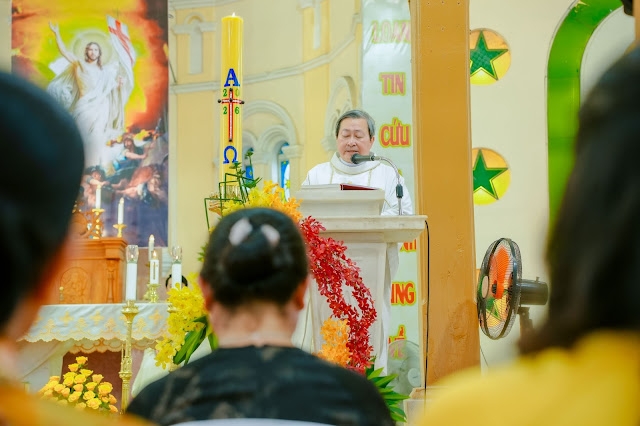 Liên hệ với bài Tin Mừng, cha Giuse Maria nhắc đến việc người ta buôn bán nơi đền thờ khiến Chúa nổi giận. Ngài cảnh tỉnh: nếu không sống bám vào Thiên Chúa, mất tập trung vì lo lắng chuyện thế gian, thì nhà Chúa không được trùng tu sẽ xuống cấp, tâm hồn con người không sống bởi Lời Thiên Chúa sẽ dễ sa ngã. Ngài kêu gọi mọi người cầu nguyện nhiều cho các tân linh mục, những người đã được chọn giữa muôn người, để các ngài luôn nhiệt thành rao giảng, sống thánh thiện và góp phần Phúc âm hoá thế giới.