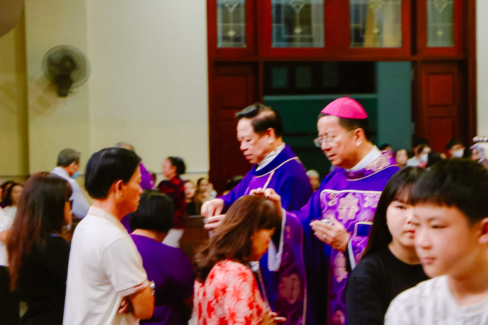 Sau phần Phụng vụ Lời Chúa, cộng đoàn nghiêm trang tiến lên lãnh nhận tro thánh trong tâm tình sám hối: “Hãy sám hối và tin vào Tin Mừng”.